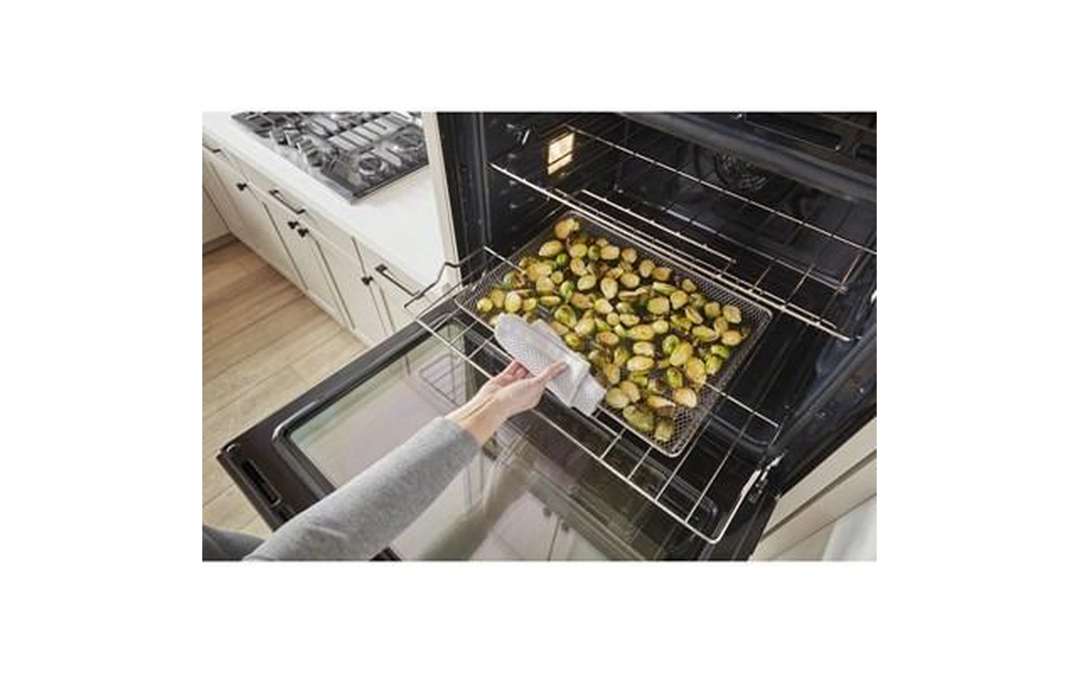 Take on every meal with a smart double wall oven with air fry built for multitasking. Get crispy results in this double wall oven with Air Fry Mode (available via Automatic Feature Updates* when appliance is connected), while Fan Convection Cooking and Frozen Bake™ Technology let you get meals to the table easily. Clean everyday spills with the Steam Clean Option.