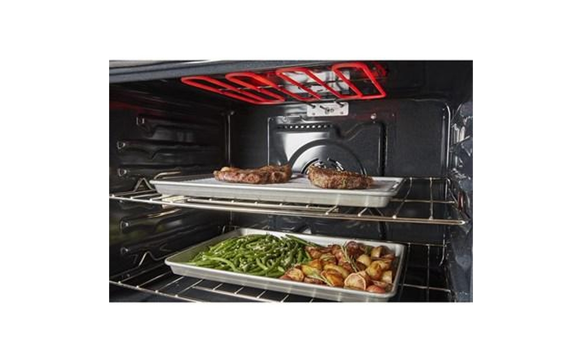 Make large family meals by cooking your main course, side dishes and dessert in this 8.6 Cu. Ft. Total Capacity double wall oven.