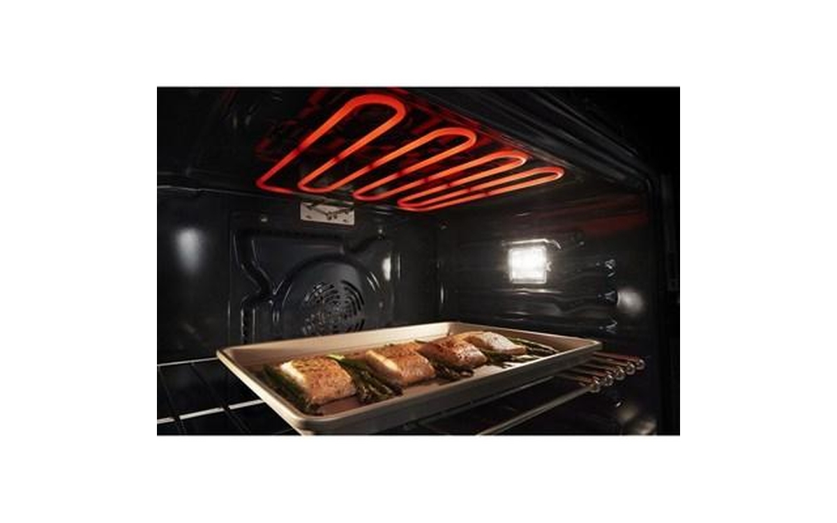 True convection uses a powerful third heating element and a sturdy fan to more evenly* circulate hot air around the oven so you can cook the whole meal at once without having to rotate your dishes for all-around baking.*Compared to two-rack traditional baking.