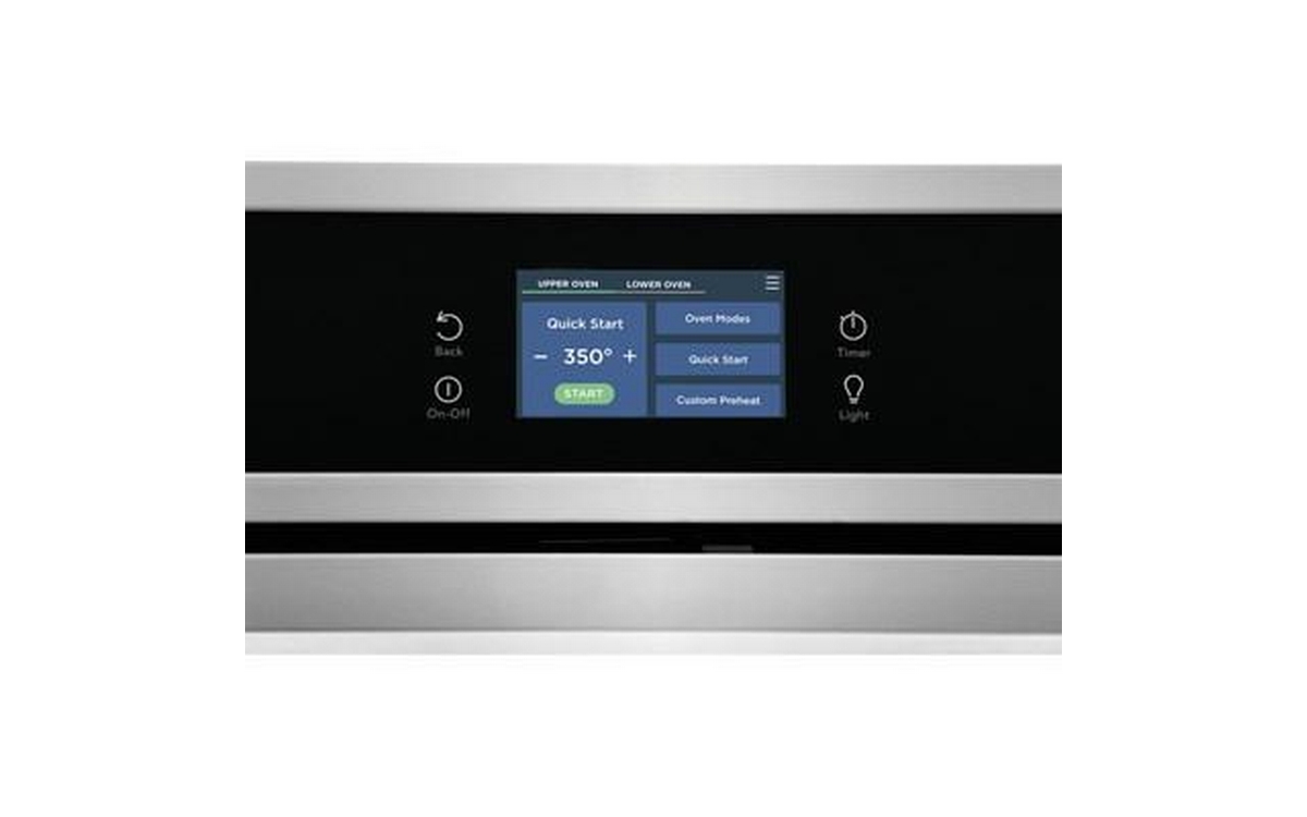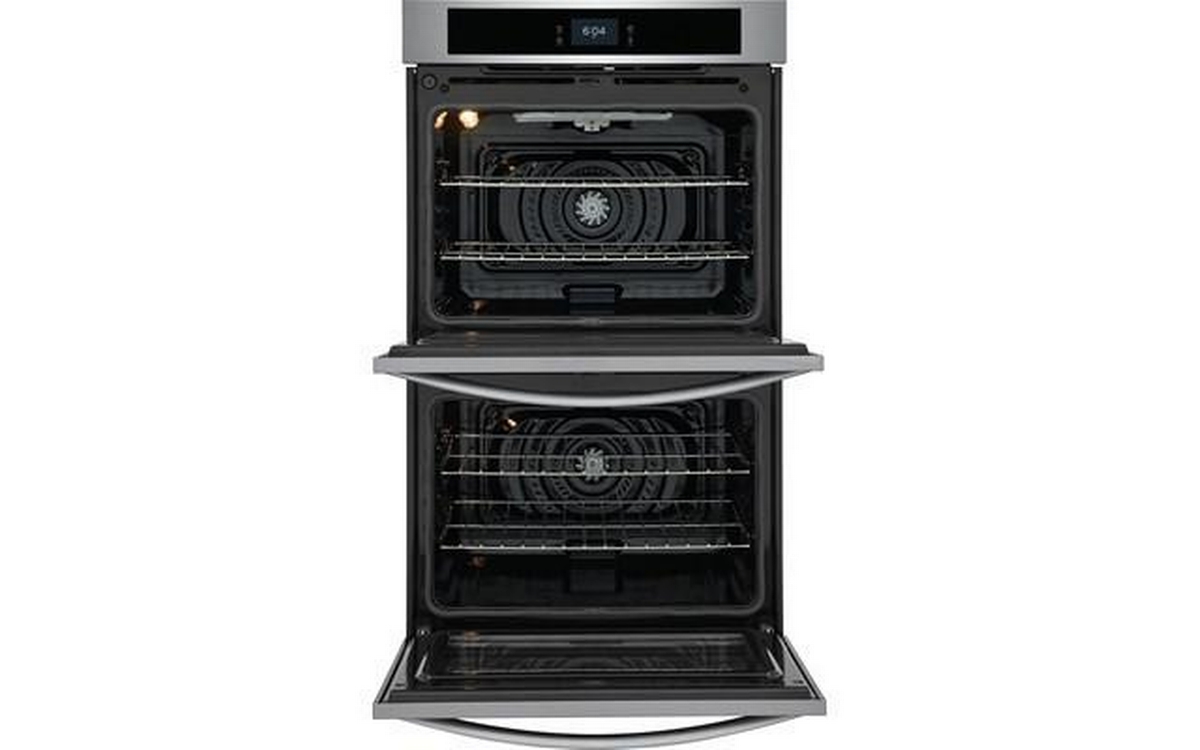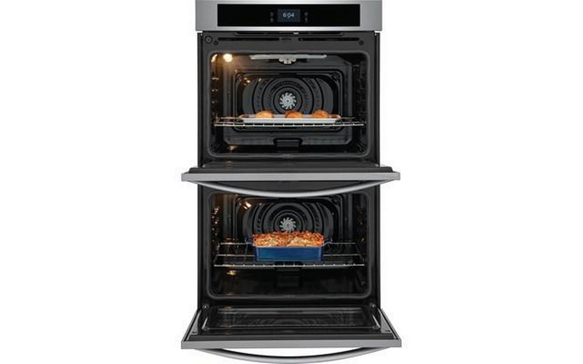 Frigidaire 30" Double Electric Wall Oven with Fan Convection for faster, more even multi-rack baking results. It features Extra-Large Oven Capacity, customizable Broil Temperatures and a responsive 4.3 inch, full color, capacitive touch digital control panel.