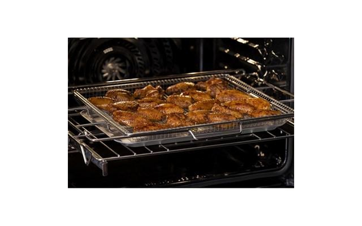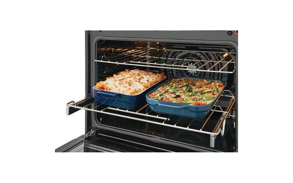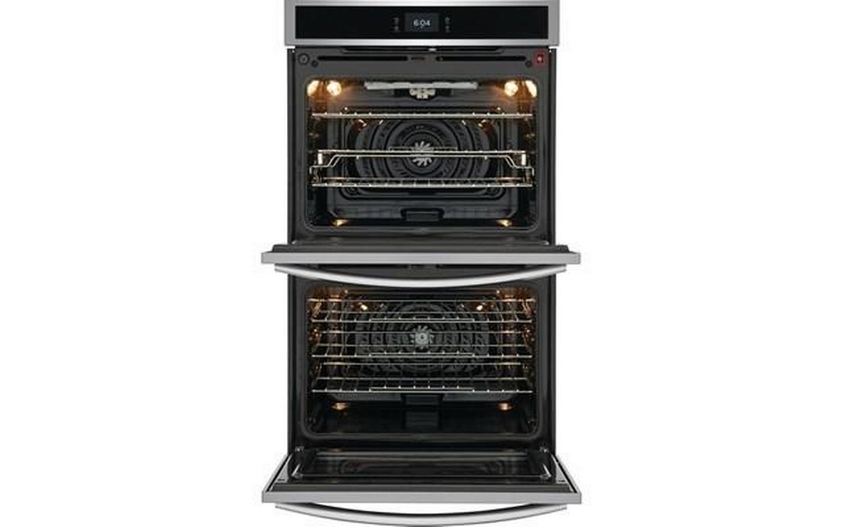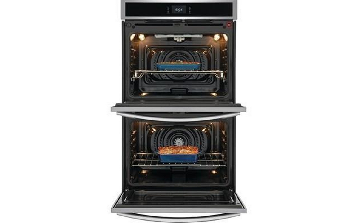 This Frigidaire Gallery double wall oven features Convection Technology, Air Fry Technology, self-clean oven and a total capacity of 10.6 cu.ft. (both ovens).