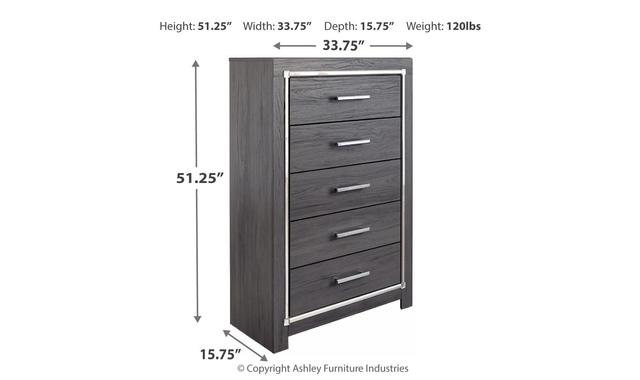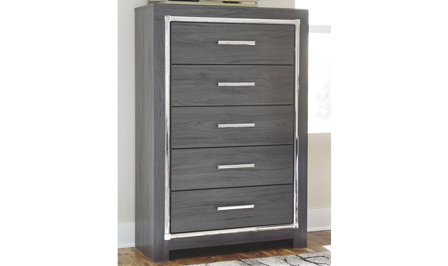 Reminiscent of Hollywood glamour of yesteryear, this chest of drawers interprets luxury in a decidedly modern way. Dazzling gray finish and faceted chrome-tone accents enhance the star power, while five smooth-gliding drawers provide enough storage to appease your inner diva.