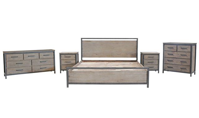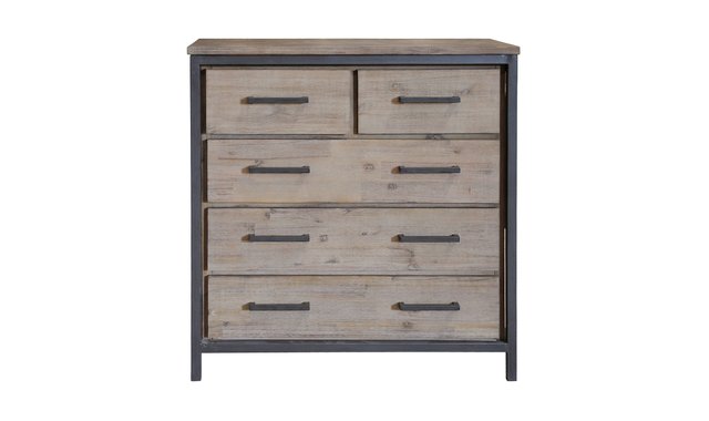 Solid Acacia Wood MDF Veneer Sides Metal Glides 5 Drawers Each WDH": (x3) 31.6 x 13.1 x 5 & (x2) 14 x 13.1 x 5 Black Iron Frame Warning, this item includes an anti-tip kit package. This item must be secured to the wall according to assembly instructions and kit provided.