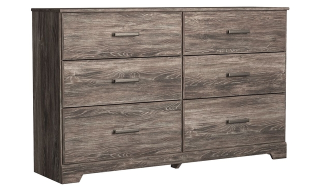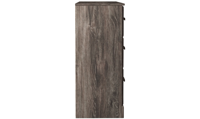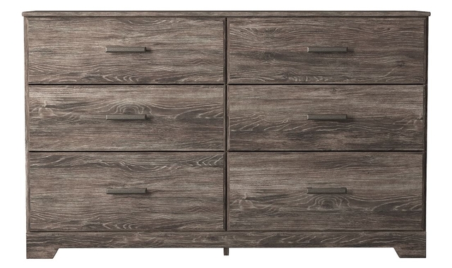 With its clean-lined look and modern attitude, this dresser is a fresh style awakening. Warm gray hue over replicated oak grain easily complements other furniture finishes. Smooth drawer fronts with antiqued pewter-tone handles completes the aesthetic.