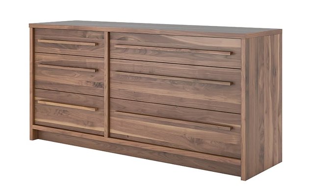 Collection Lima A simple but practical and elegant bedroom collection. Crafted for you in your choice of walnut, LIMA COM 1862 18 x 62 x H 30 -Space inside top drawers: 2 ¼" high x 12 ½" deep -Space inside 4 lower drawers : 6" high x 12 ½" deep
