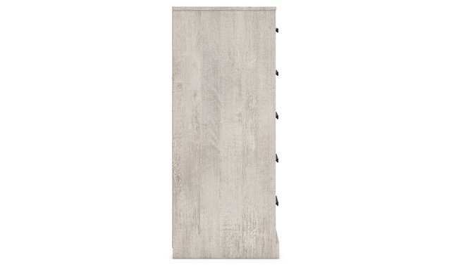 Give casual a new meaning with the chic look of the Shawburn chest of drawers. A light gray finish over replicated oak grain keeps it laid-back and inviting, while substantial pulls in a warm pewter tone add a modern farmhouse touch. Spacious drawers give you plenty of room to store your wardrobe. Talk about a delightfully relaxed vibe in your inner sanctum.