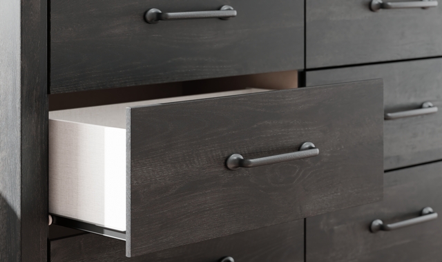 This dresser puts a casually chic twist on everyday function. Its rustic charcoal finish pairs well with other neutrals and pops of color alike, giving you the flexibility to change up your aesthetic as you please. Smooth-gliding drawers keep clothes and bed linens stored in style.