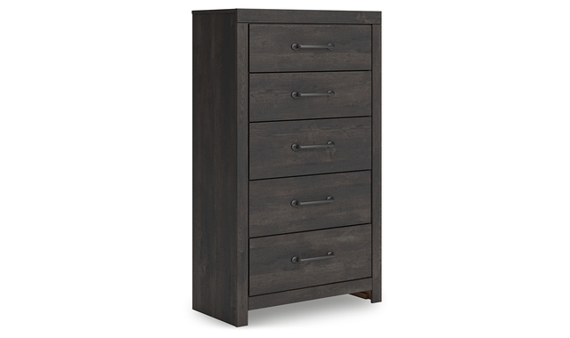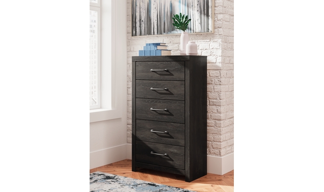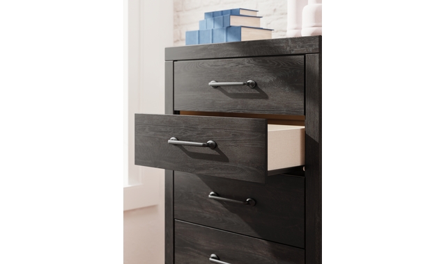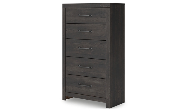 This chest of drawers puts a casually chic twist on everyday function. Its rustic charcoal finish pairs well with other neutrals and pops of color alike, giving you the flexibility to change up your aesthetic as you please. Smooth-gliding drawers keep clothes and bed linens stored in style.