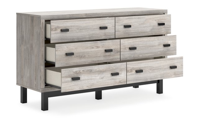 Craft a contemporary hideaway without breaking the bank. An elegant juxtaposition of refined neutral hues, this two-toned dresser brings sleek style to your space. Matte black drawer handles enhance the sheer simplicity of its profile. With this storage piece, a bedroom brimming with luxury has never been more attainable.