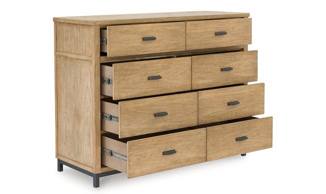 Sleek in its simplicity, this dresser takes a relaxed approach to refinement. Its mixed-material design brings a trendy urban-chic feel to your morning and nighttime routines, while functional features keep your bedroom clutter-free. Clothes and linens are easily tucked away in the smooth-gliding drawers.