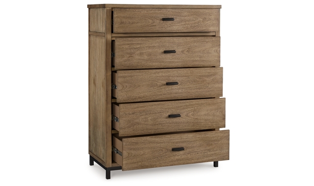 Sleek in its simplicity, this chest of drawers takes a relaxed approach to refinement. Its mixed-material design brings a trendy urban-chic feel to your morning and nighttime routines, while functional features keep your bedroom clutter-free. Clothes and linens are easily tucked away in the smooth-gliding drawers.