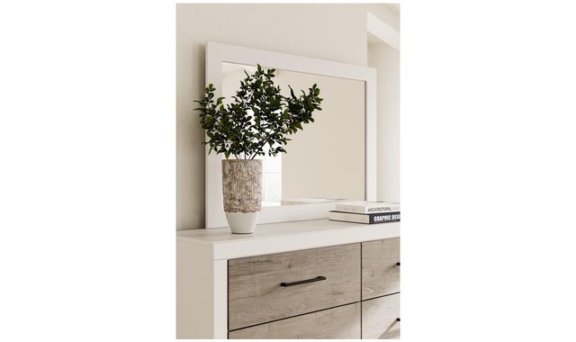 | Additional Information | • Made with engineered wood (MDF/particleboard/plywood) and decorative laminate for the right balance of affordability and durability • Matte white finish • Dry, light finish over replicated oak grain with authentic touch • Decorative laminate replicates natural or man-made material surfaces with consistent color, pattern and texture • Handles with antiqued gunmetal finish • 6 smooth-gliding drawers • Drawer interiors are lined with a faux linen laminate for a clean, finished look • Framed front and pilasters • Safety is a top priority, clothing storage units are designed to meet the most current standard for stability, ASTM F 2057 (ASTM International) • Drawers extend out to accommodate maximum access to drawer interior while maintaining safety • Minor assembly required • Assembled dresser/mirror: 58.75"W x 15.75"D x 67.25"H • Drawer interior (6): 24.5"W x 13"D x 6.5"H |