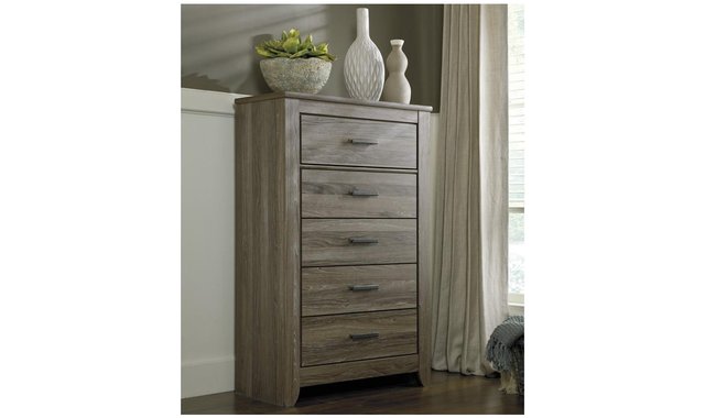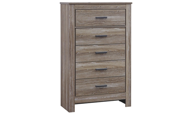 | Additional Information | • Made of engineered wood (MDF/particleboard) and decorative laminate • Warm gray vintage finish with white wax effect over replicated oak grain • Pewter-tone hardware • 5 smooth-operating drawers • Small Space Solution • Includes tipover restraint device • Safety is a top priority, clothing storage units are designed to meet the most current standard for stability, ASTM F 2057 (ASTM International) • Drawers extend out to accommodate maximum access to drawer interior while maintaining safety • Drawer interior (5): 24.5"W x 13"D x 5"H |