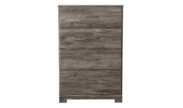 | Additional Information | • Made with engineered wood (MDF/particleboard/plywood) and decorative laminate for the right balance of affordability and durability • Rustic warm gray finish over replicated oak grain with authentic touch • Large scale pewter-tone handles • 4 smooth-gliding drawers • Safety is a top priority, clothing storage units are designed to meet the most current standard for stability, ASTM F 2057 (ASTM International) • Drawers extend out to accommodate maximum access to drawer interior while maintaining safety • Top drawer interior (3): 27"W x 13"D x 6.5"H • Bottom drawer interior: 27"W x 13"D x 8.25"H |