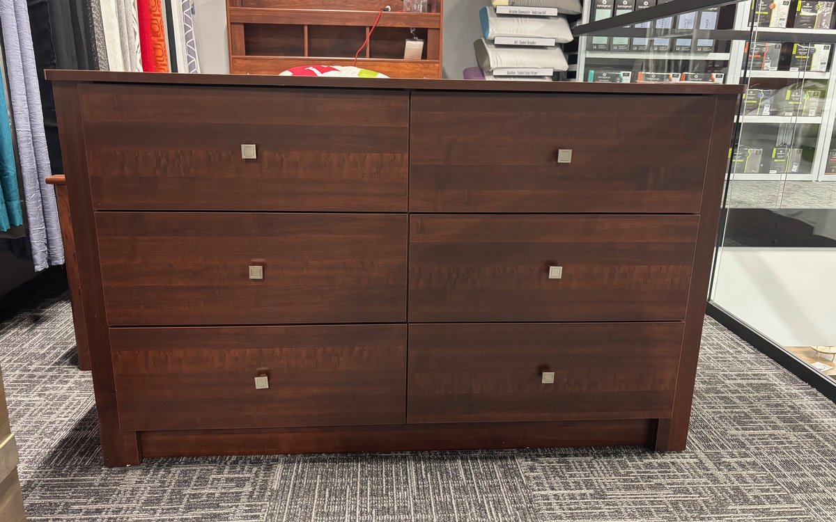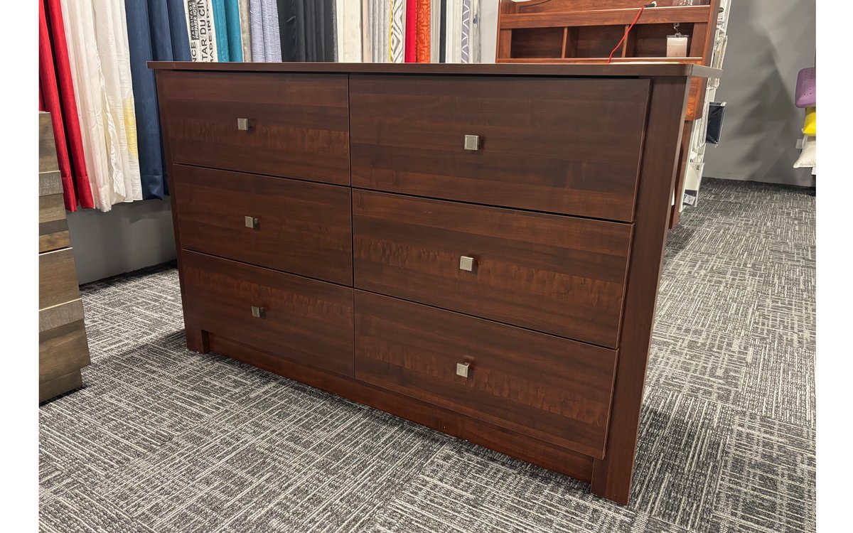 Bureau double de la compagnie Nouveau Concept en mélamine de couleur cerisier.