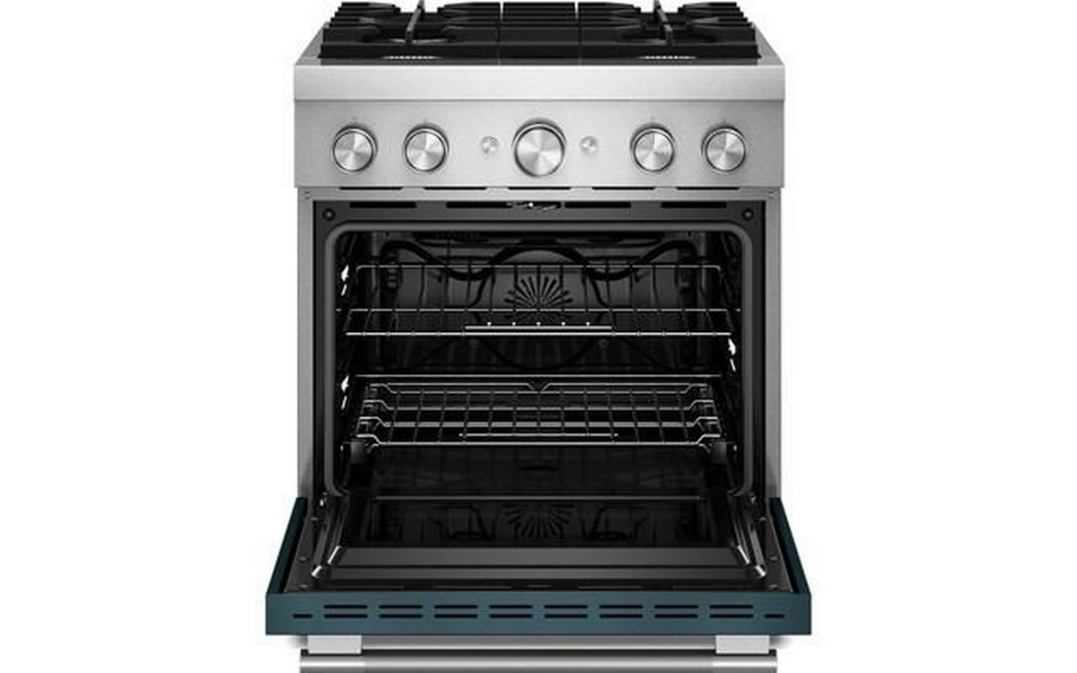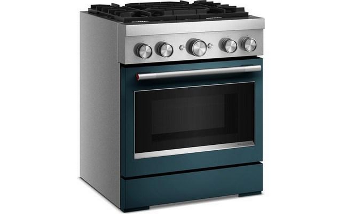 Empower your creativity with a 30-inch KitchenAid® Commercial Style Range with 4 burners. This dual fuel range combines a gas cooktop with the even baking of an electric oven. Two versatile 20,000 BTU Ultra Power™ Dual-Flame Burners offer the power and precision to sear, simmer, stir-fry and sauté. Even-Heat™ True Convection gives consistent baking and roasting, plus air fry mode that yields crispy, golden results.