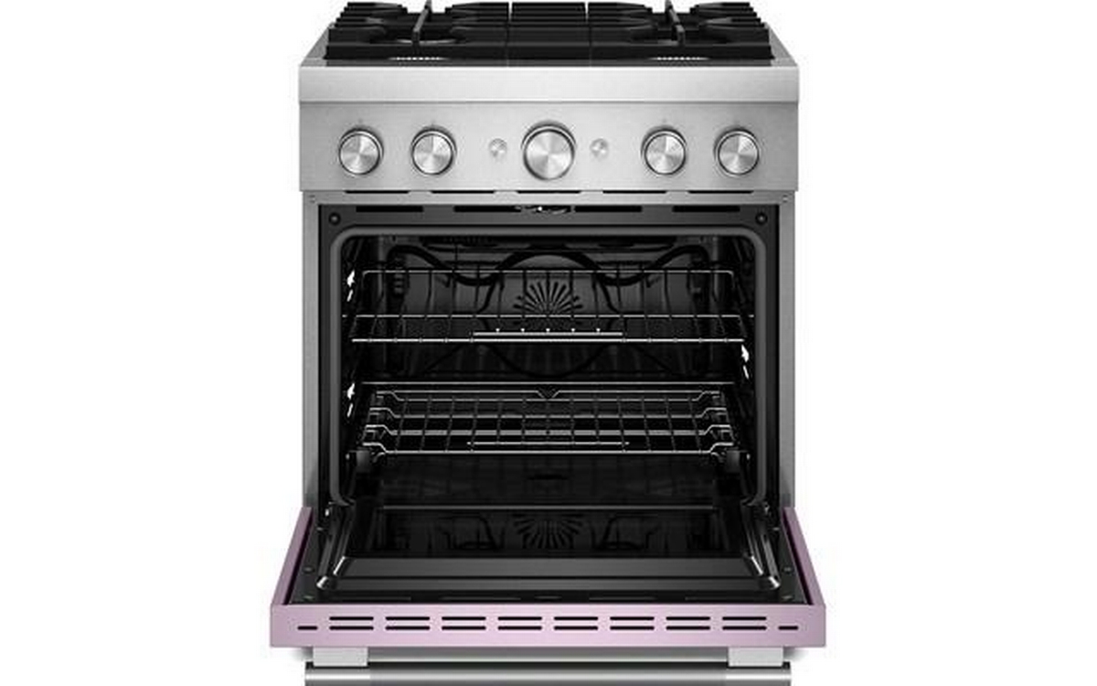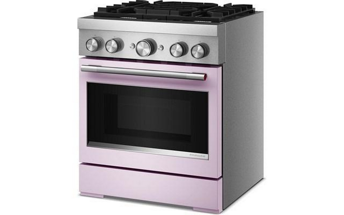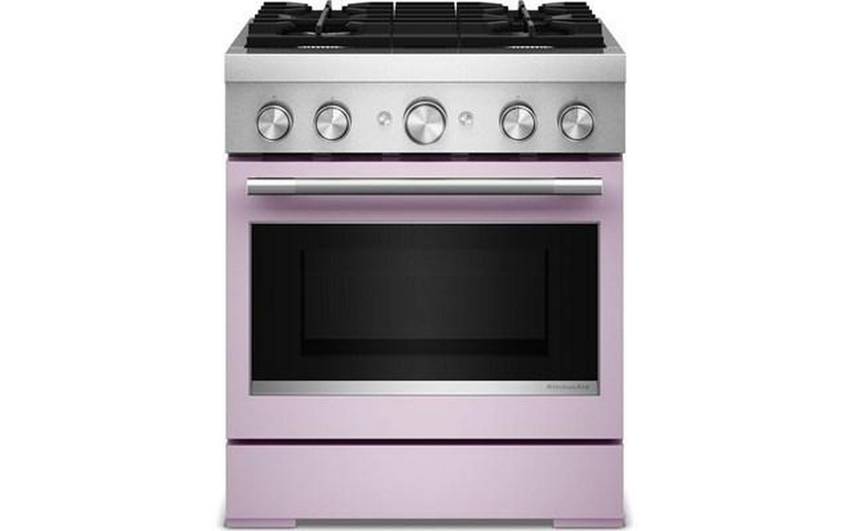 Empower your creativity with a 30-inch KitchenAid® Commercial Style Range with 4 burners. This dual fuel range combines a gas cooktop with the even baking of an electric oven. Two versatile 20,000 BTU Ultra Power™ Dual-Flame Burners offer the power and precision to sear, simmer, stir-fry and sauté. Even-Heat™ True Convection gives consistent baking and roasting, plus air fry mode that yields crispy, golden results.