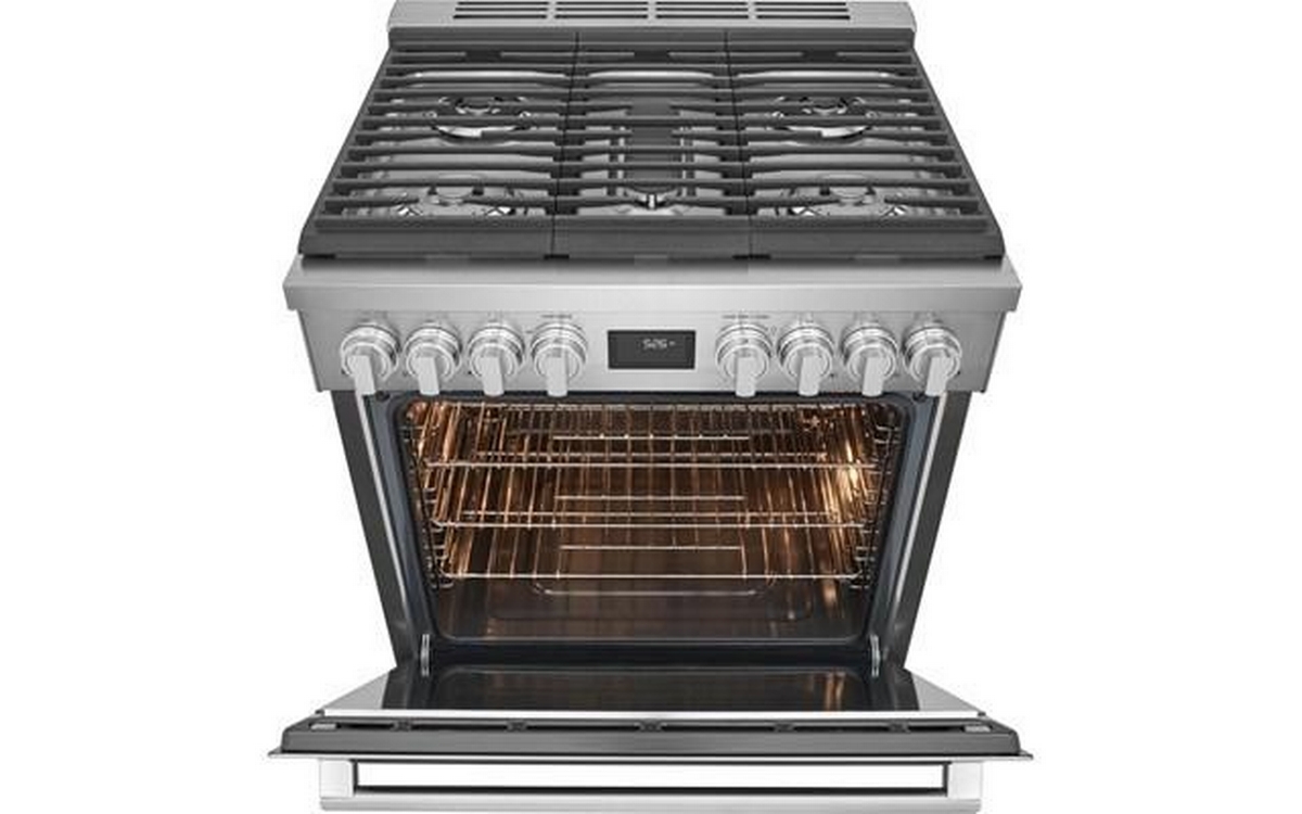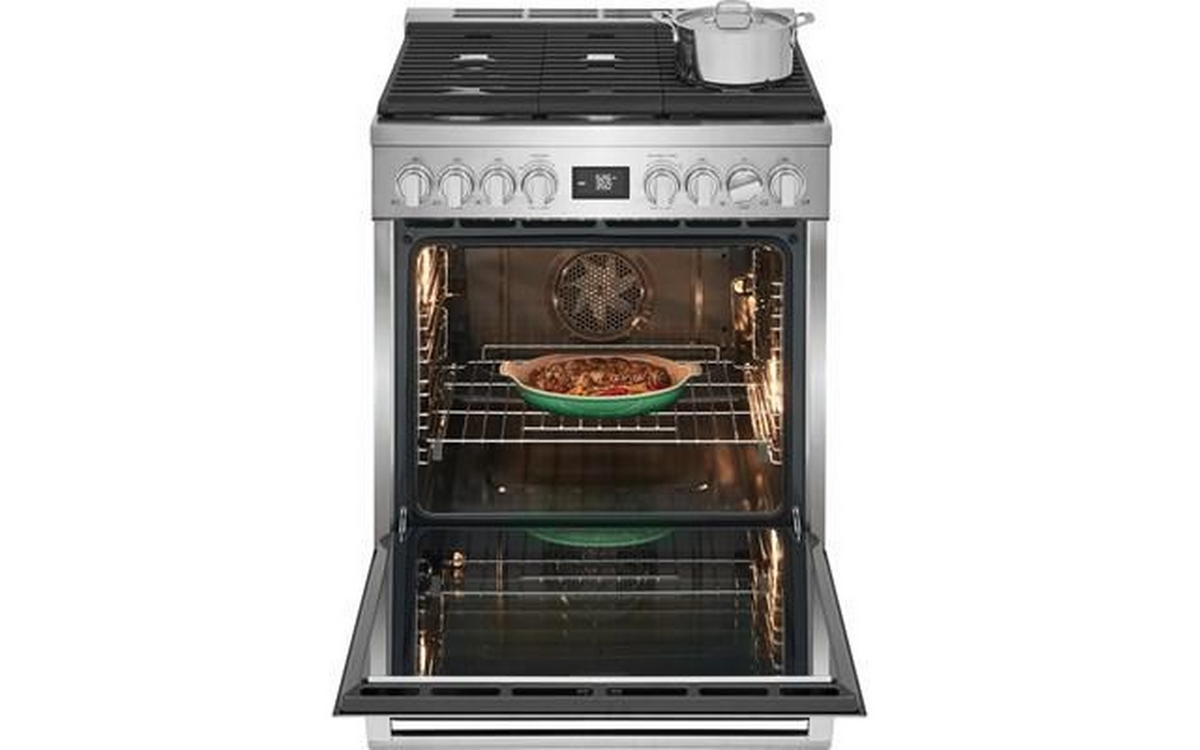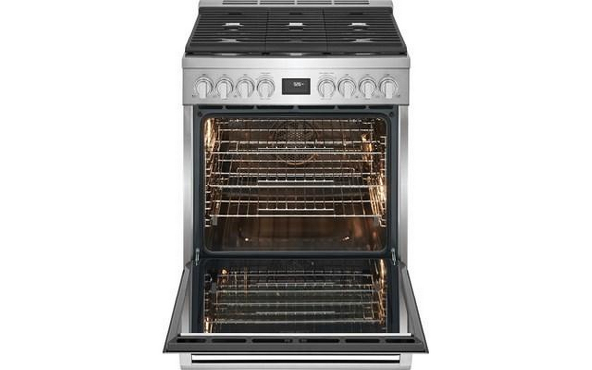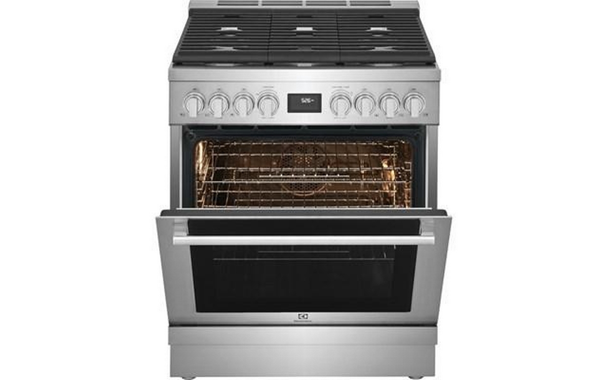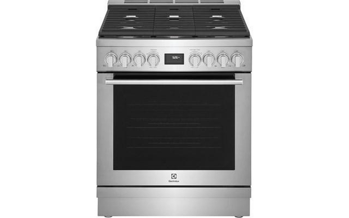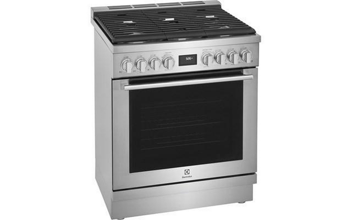 Electrolux 30" dual-fuel freestanding range. Explore your culinary creativity with this Electrolux dual-fuel freestanding range with the ideal combination of a gas cooktop and electric oven for delicious results, no matter the dish.