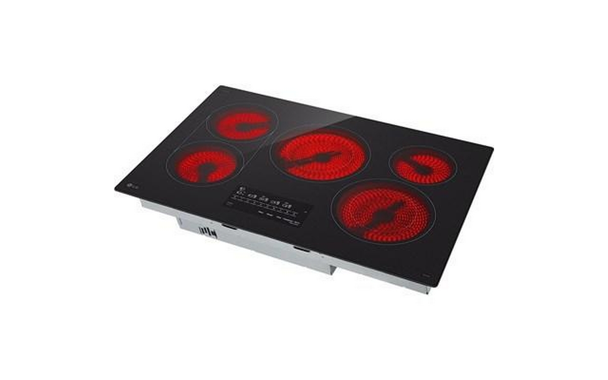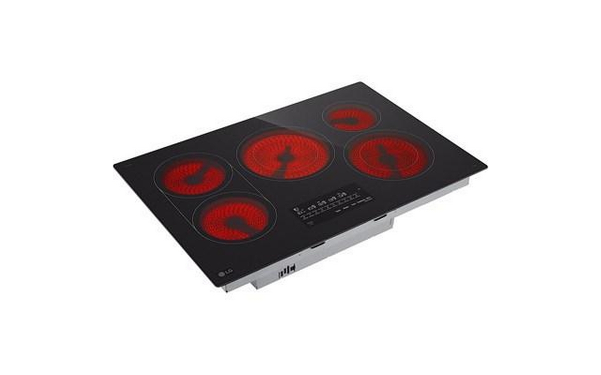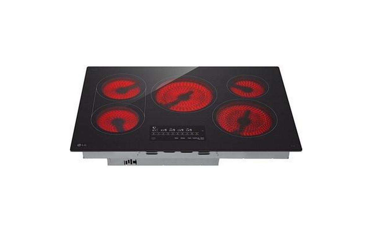 LG 30-inch Built-in Smart Electric Cooktop featuring 5 elements and intuitive SmoothTouch® glass controls, this cooktop delivers sleek style, smart convenience, and precise cooking performance.