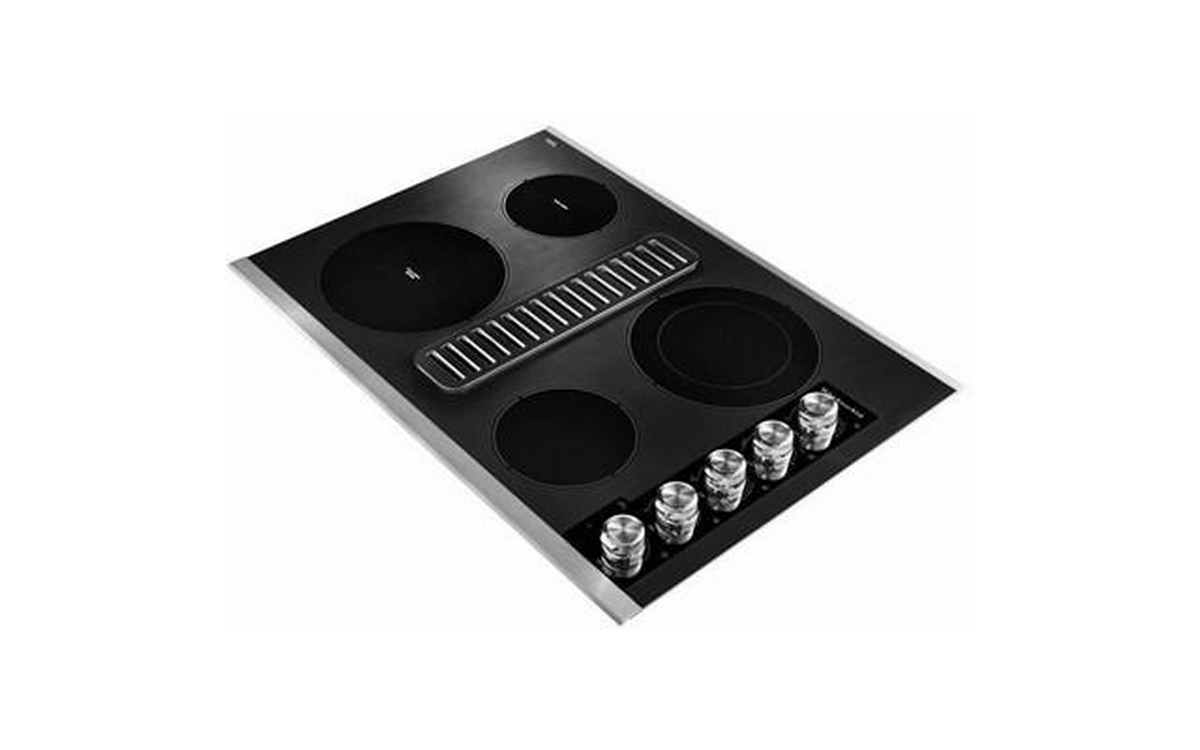 This 30” electric cooktop features Downdraft, an integrated ventilation system that doesn’t require a separate hood. A 10-inch Even-Heat™ Ultra element provides versatility for both high- and low-temperature cooking, and has multiple simmer settings. And with a 3-speed fan with 300 CFM exhaust rating, the venting can keep up with your culinary feats.