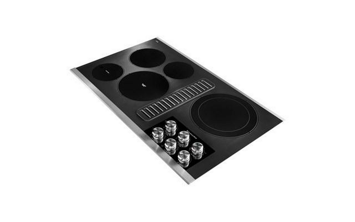 This 36” electric cooktop features Downdraft, an integrated ventilation system that doesn’t require a separate hood. A 10-inch Even-Heat™ Ultra element provides versatility for both high-and low-temperature cooking, and has multiple simmer settings. And with a 3-speed fan with 300 CFM exhaust rating, the venting can keep up withyour culinary feats.