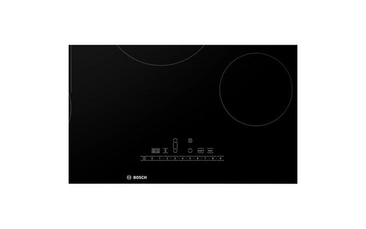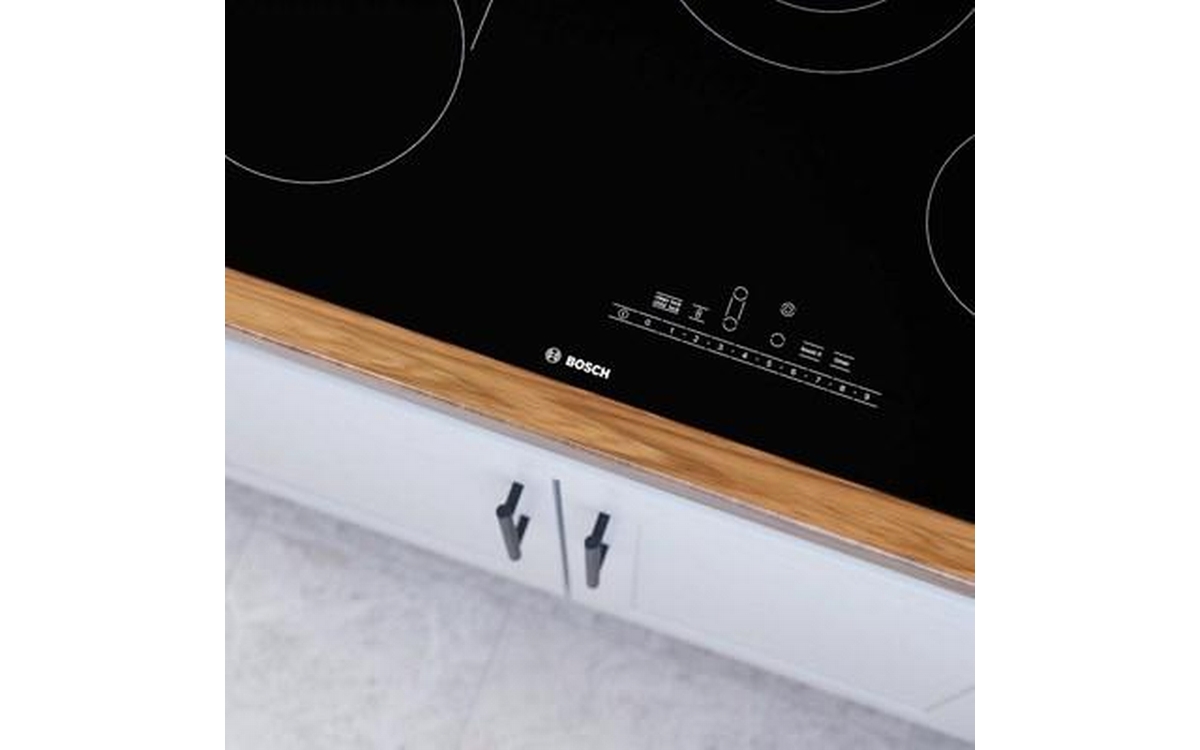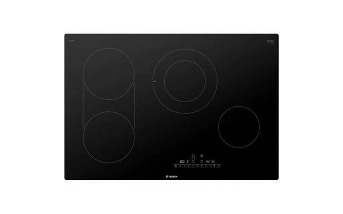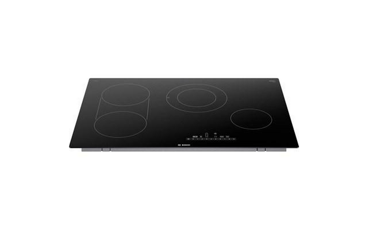 Bosch 800 Series electric cooktop features PreciseSelect® direct cooking level selection, SpeedBoost®, ceramic glass surface and 4 elements.