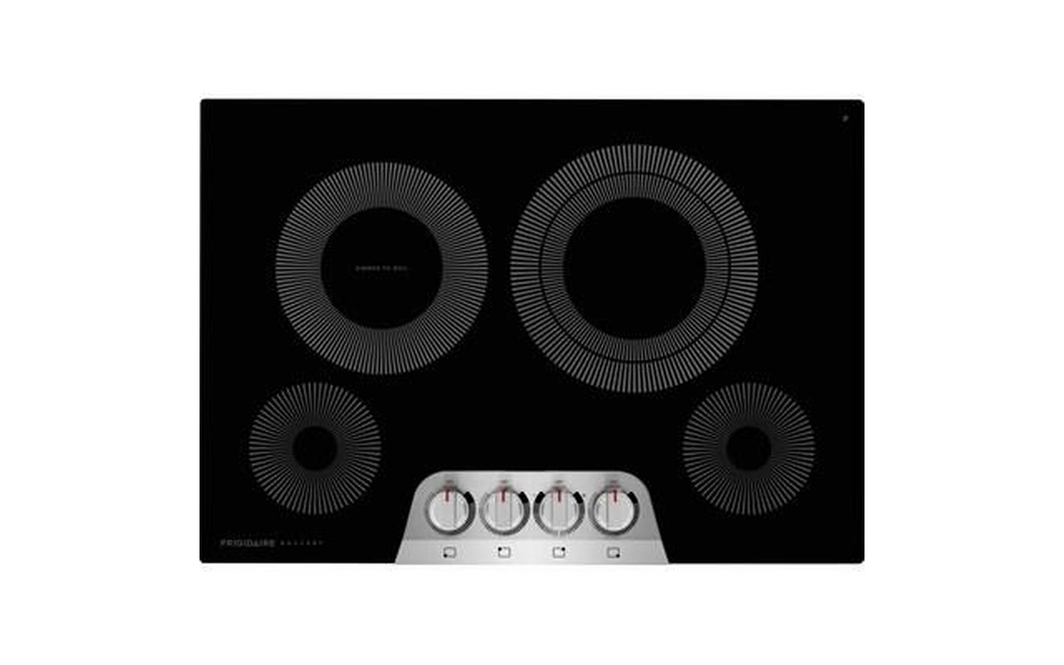 Frigidaire Gallery 30-inch electric cooktop features 4 cooktop elements and 4 illuminated knobs.