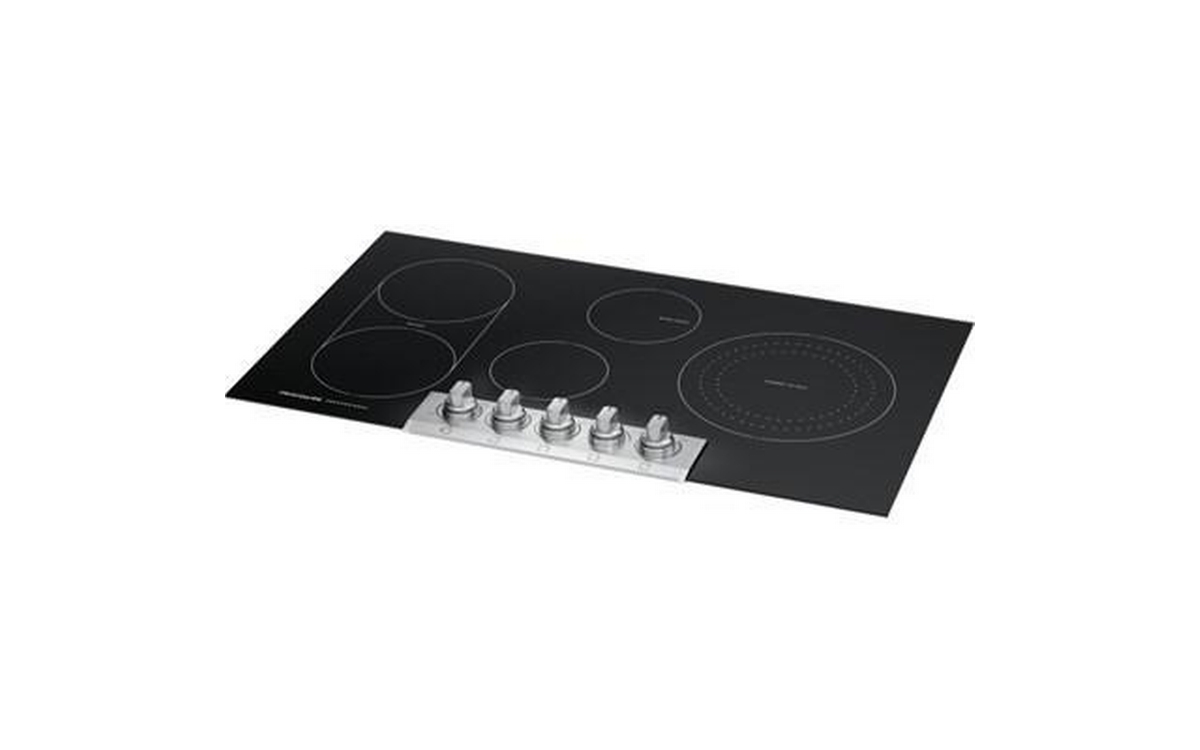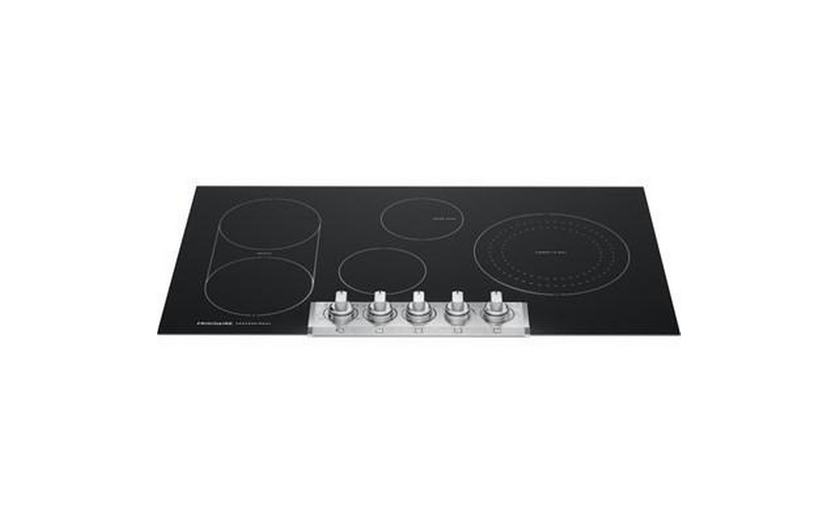 This Frigidaire Professional 36-inch electric cooktop features 5 elements including a bridge element and a keep warm zone.