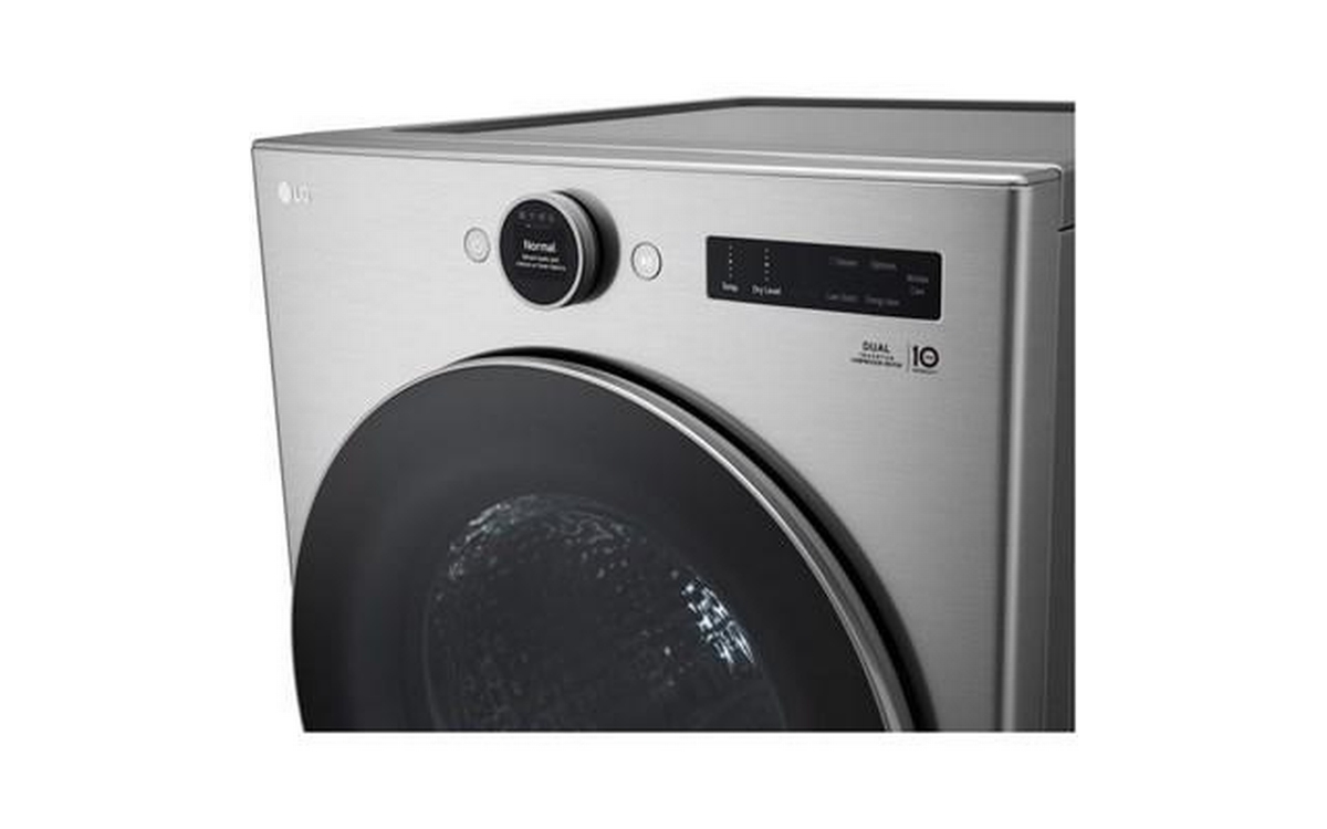LG 7.8 cu. ft. mega capacity Smart front load dryer with Dual Inverter HeatPump™ technology and Inverter Direct Drive Motor system.