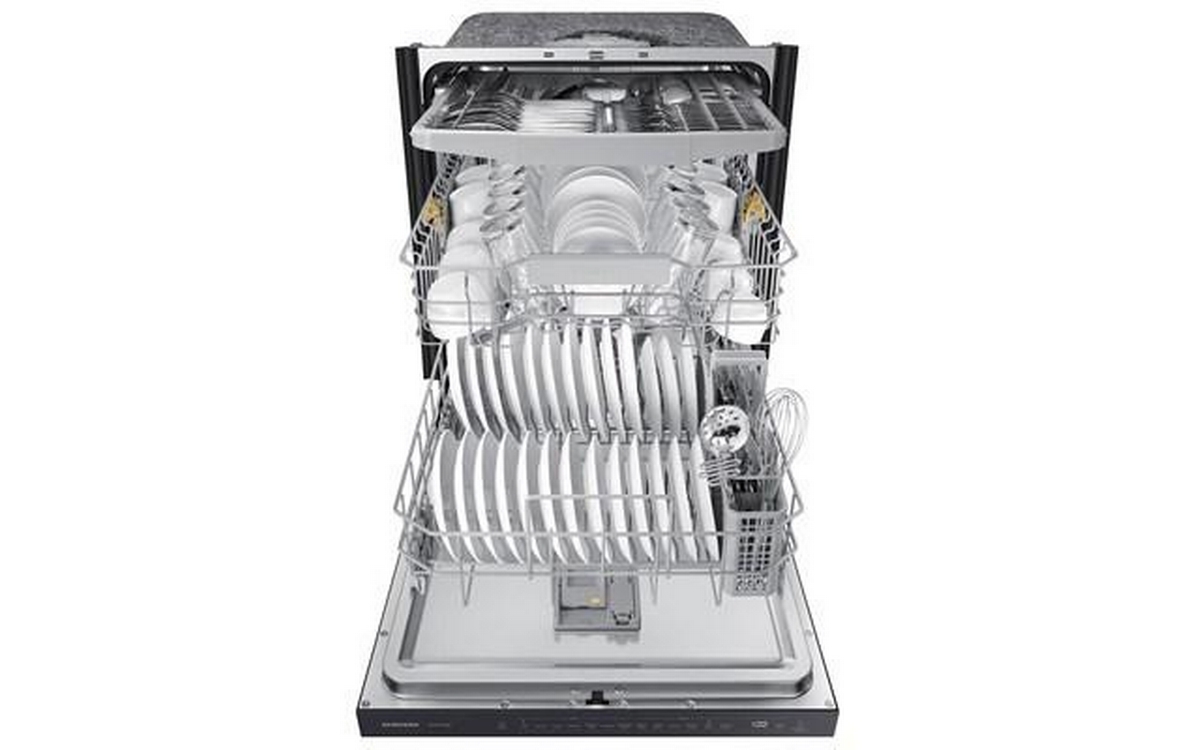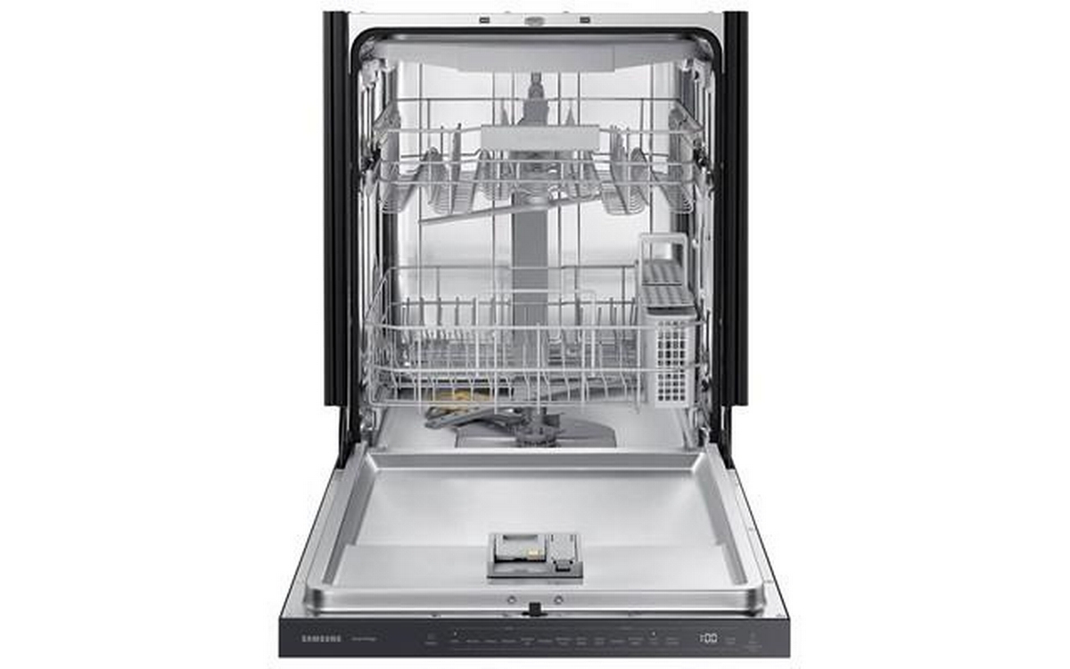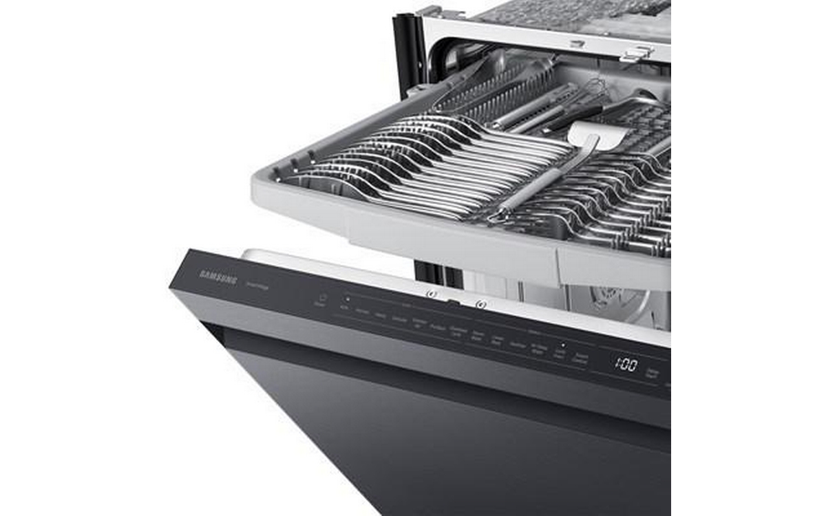 Samsung 46 dBA Smart Dishwasher with StormWash™. Clean the messiest pots and pans perfectly without the hassle of pre-washing. StormWash™ is a heavy-duty wash system with an extra spray jet that rotates independently from the main spray arm. It blasts high-pressure water from every angle to clean heavily soiled items of all shapes and sizes. Save energy but still clean and dry dishes effectively. The dishwasher is ENERGY STAR® certified under the ENERGY STAR® 7.0 energy labelling.It is proven to use less energy than conventional dishwashers, without sacrificing performance or functionality.