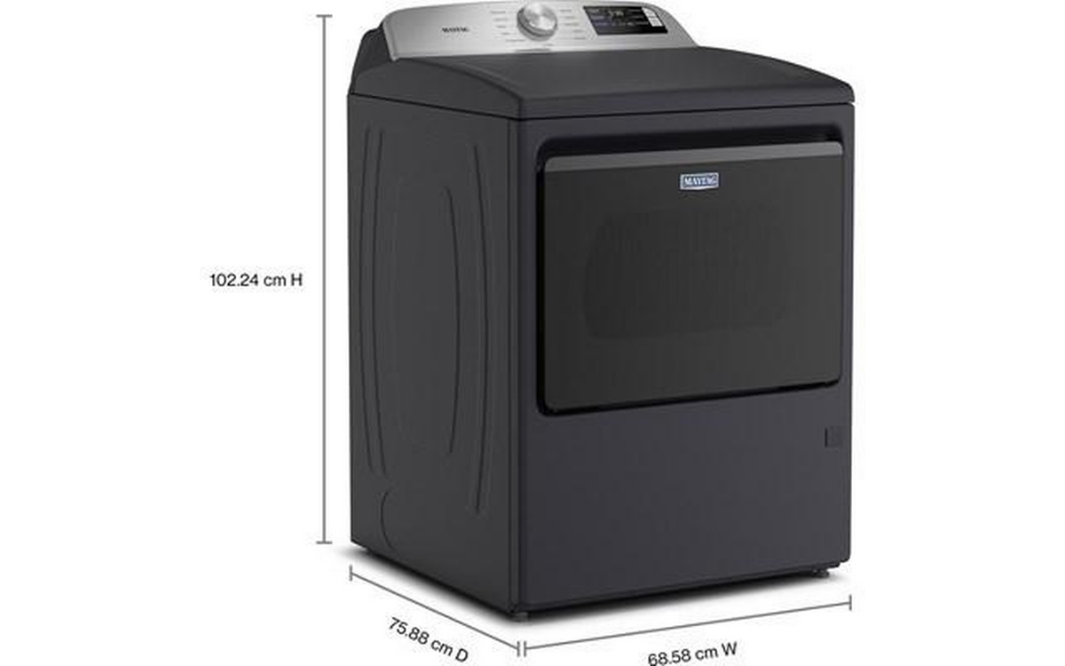 Extra Power boosts drying power to get thick fabrics drier the first time.* Advanced Moisture Sensing monitors inside moisture and air temperatures to help evenly dry loads. Dry a small load fast with the Quick Dry cycle, which pairs nicely with the Quick Wash cycle on select Maytag® washers to get clothes ready in no time. The Wrinkle Prevent option runs for up to 150 minutes after the cycle has ended to keep wrinkles from forming as the dryer continues to tumble. Smart features help you stay in control and efficiently manage laundry from anywhere.** Use the Maytag™ app to remotely start or stop your appliance and get end of cycle notifications so no load is left behind. Plus, troubleshoot select issues to avoid unnecessary service calls.