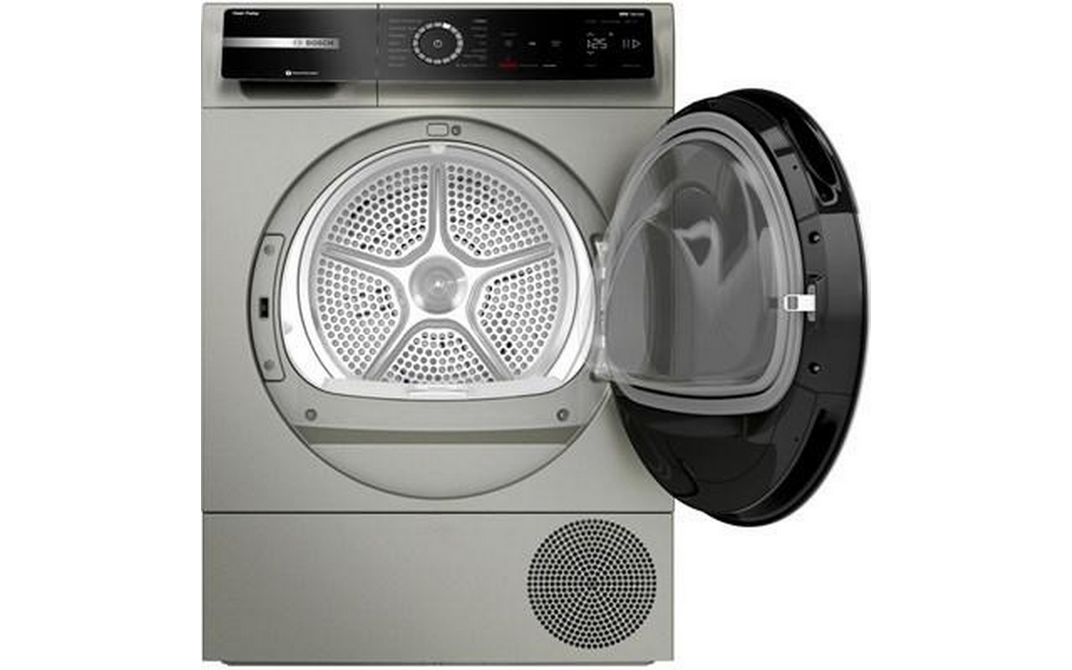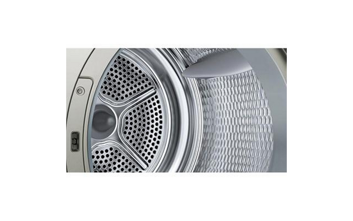 The Bosch WQB245AXUC Dryer features Steam Restore for wrinkle-free clothes, a Self-Cleaning Condenser™ which rinses fluff from the condenser with every cycle, eliminating the need to clean it by hand, ENERGY STAR® Most Efficient certification for energy savings, and ventless installation flexibility.