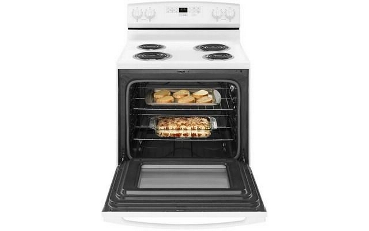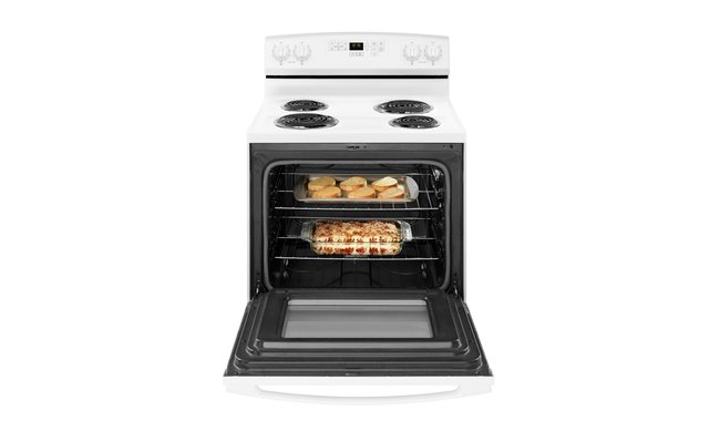 Boil your pasta and simmer the sauce all at once with the Versatile Cooktop on this 30-inch Amana® Electric Range. Plus, start baking dessert at the same time by using the extra-large and easy-to-read Easy Touch Electronic Controls Plus. Or, choose a preset temperature setting with Bake Assist Temps. Then when you're ready for cleanup, use the Self-Clean Option to help take care of leftover splatters in the oven.