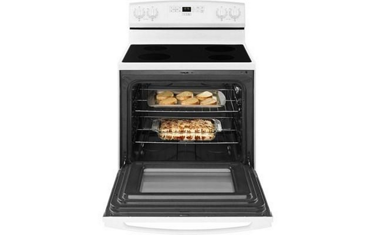 This 30-inch Amana® Electric Range comes with Bake Assist Temps to help you get dinner going. Simply choose a preset temperature setting to get started. Or, set your bake or broil temperatures with Easy Touch Electronic Controls Plus, which are extra-large and easy-to-read. And when you need to know how your dinner is doing without opening the oven door, the Extra-Large Oven Window lets you see and savor.