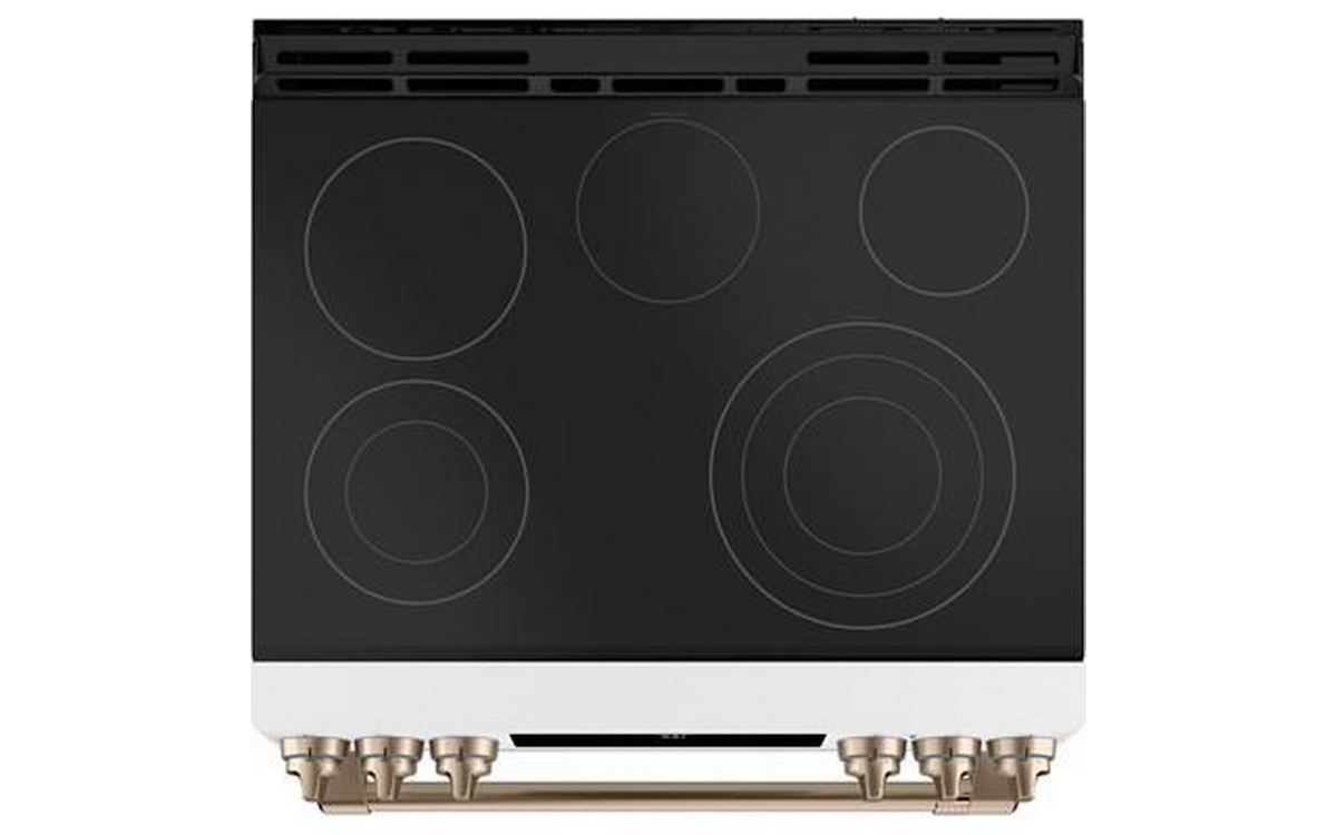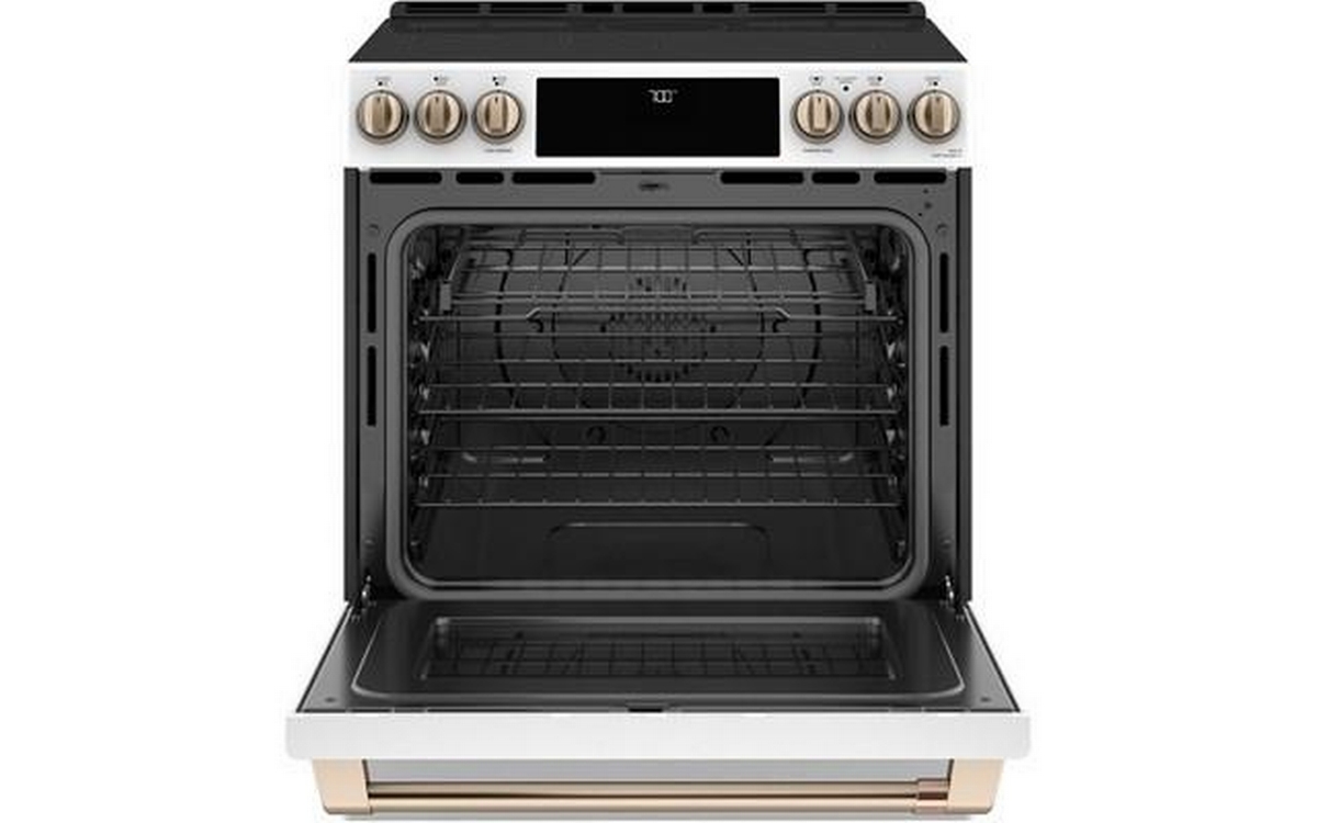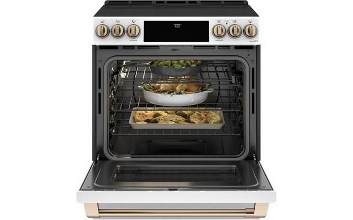 This 30-inch Café™ slide-in electric range features True European Convection with precise air, temperature probe, Wi-Fi Connect and a 5.7 cu.ft. oven capacity.