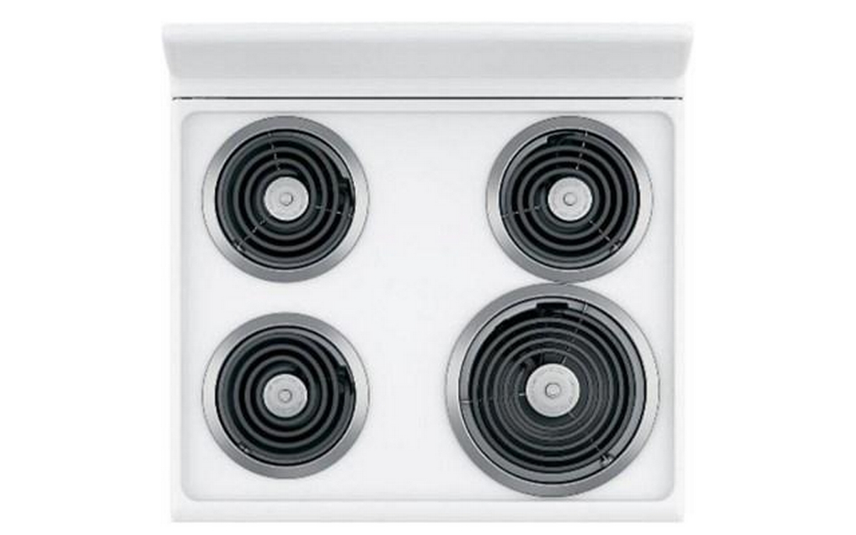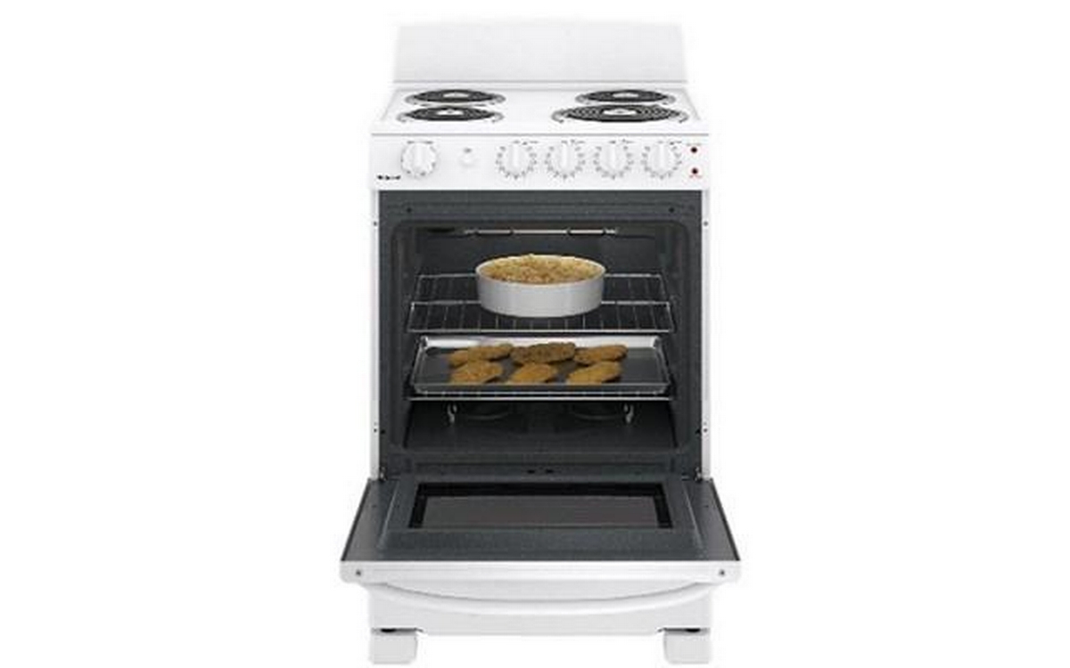 This 24-inch wide GE electric range features Sensi-Temp Technology, 4 cooktop coil elements and a 2.9 cu.ft. oven capacity.