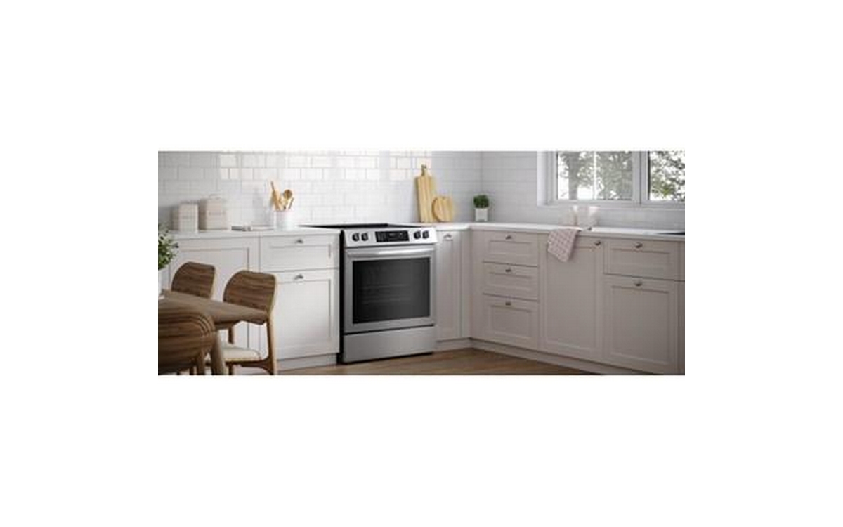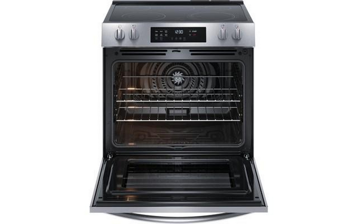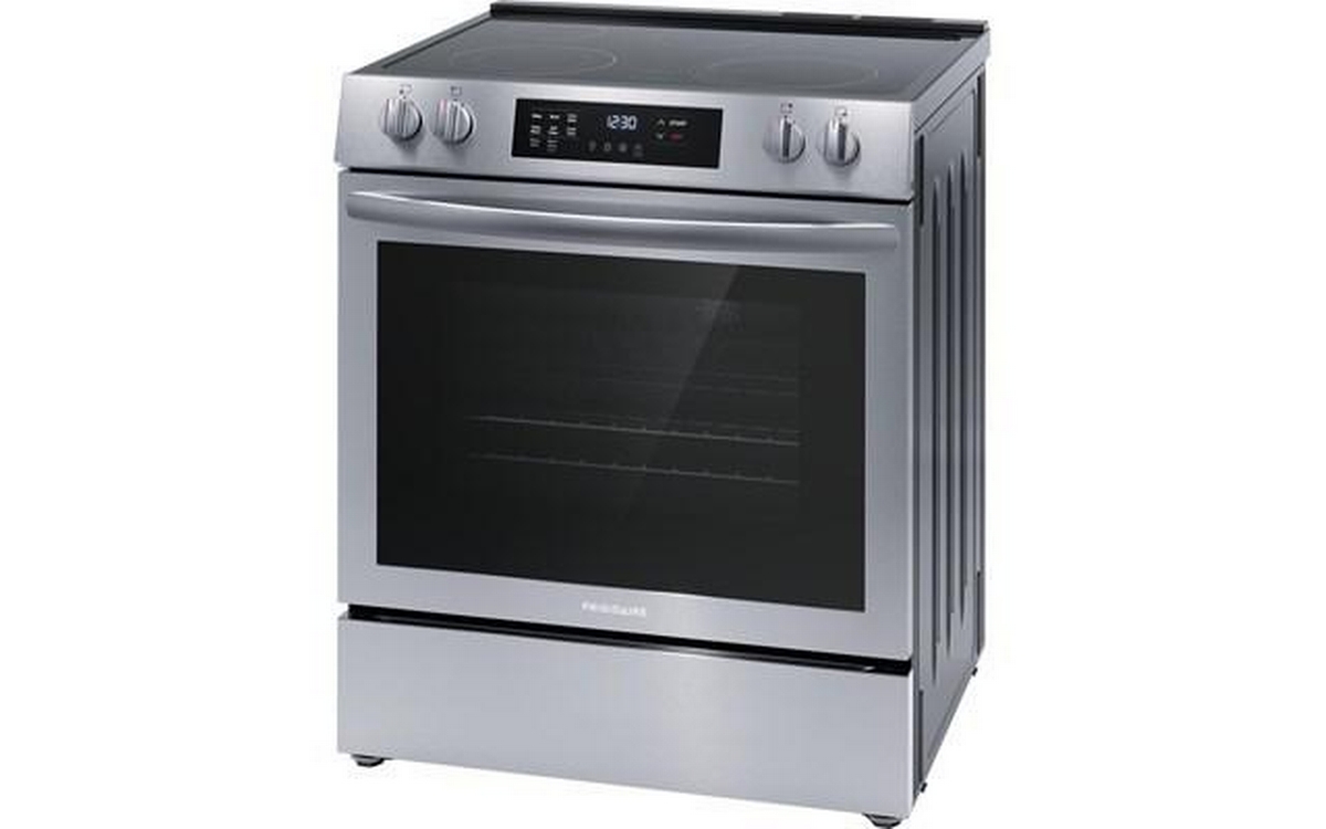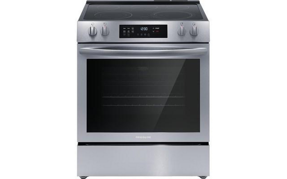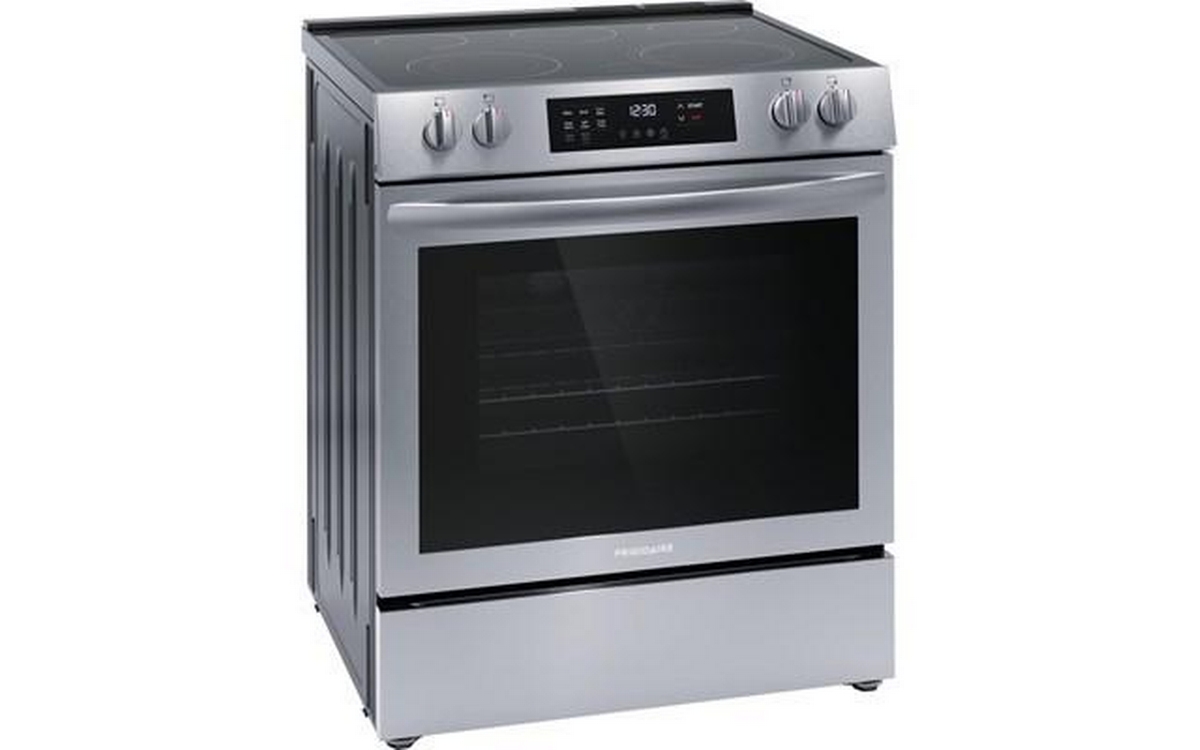 Frigidaire 30-inch freestanding electric range features EvenTemp™ technology, 5 flexible cooktop elements, a Store-More® storage drawer and a total oven capacity of 5.3 cu. ft.