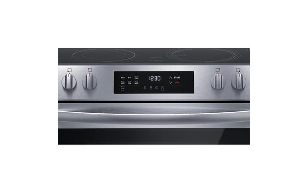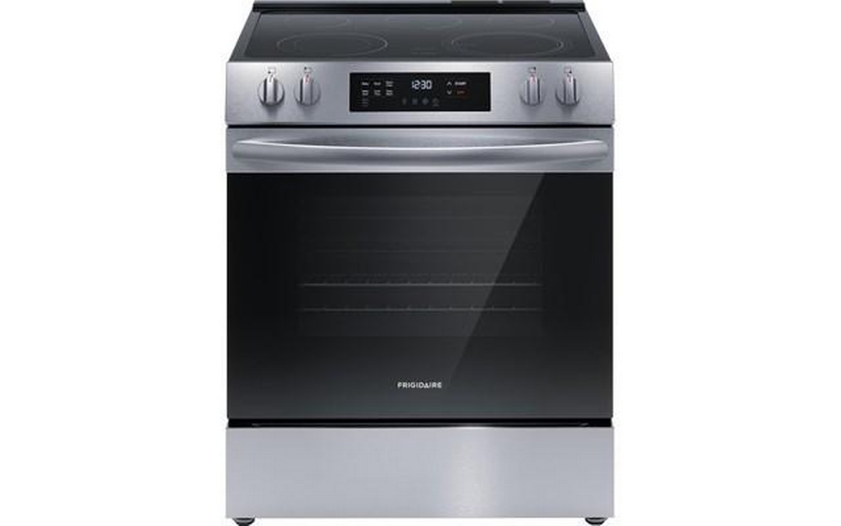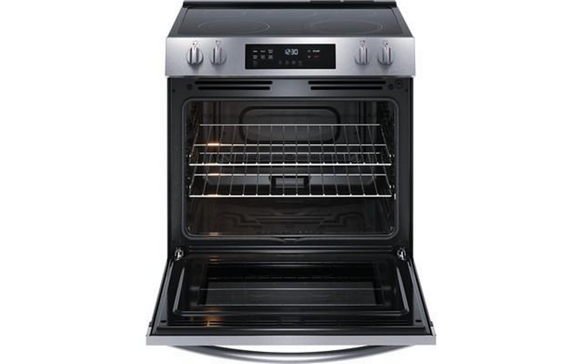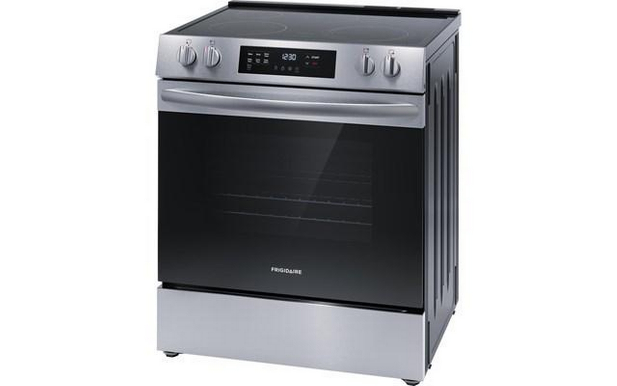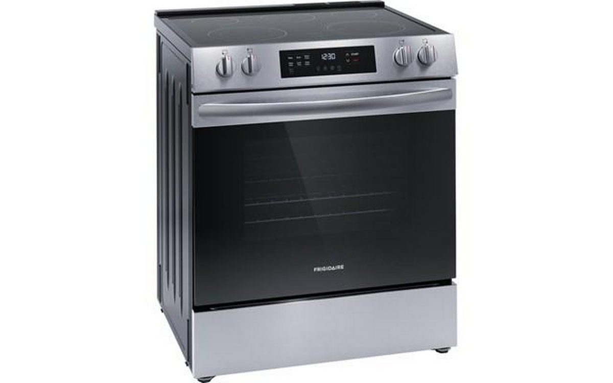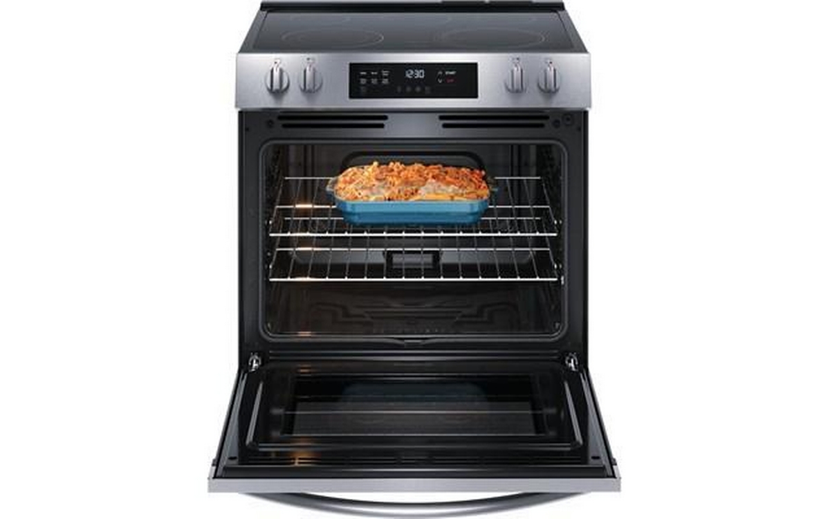 Frigidaire 30-inch electric range features digital display, flexible five elements, Even Baking Technology and a total oven capacity of 5.3 cu. ft.