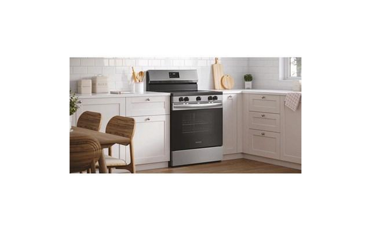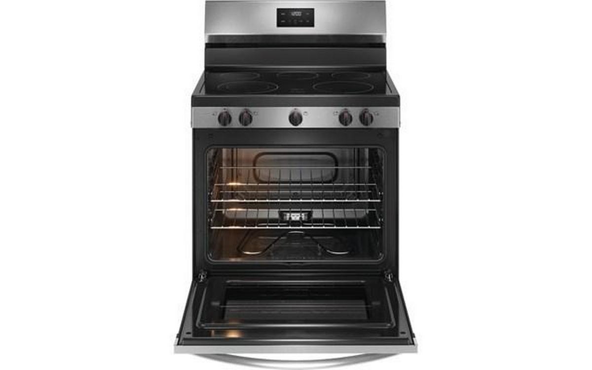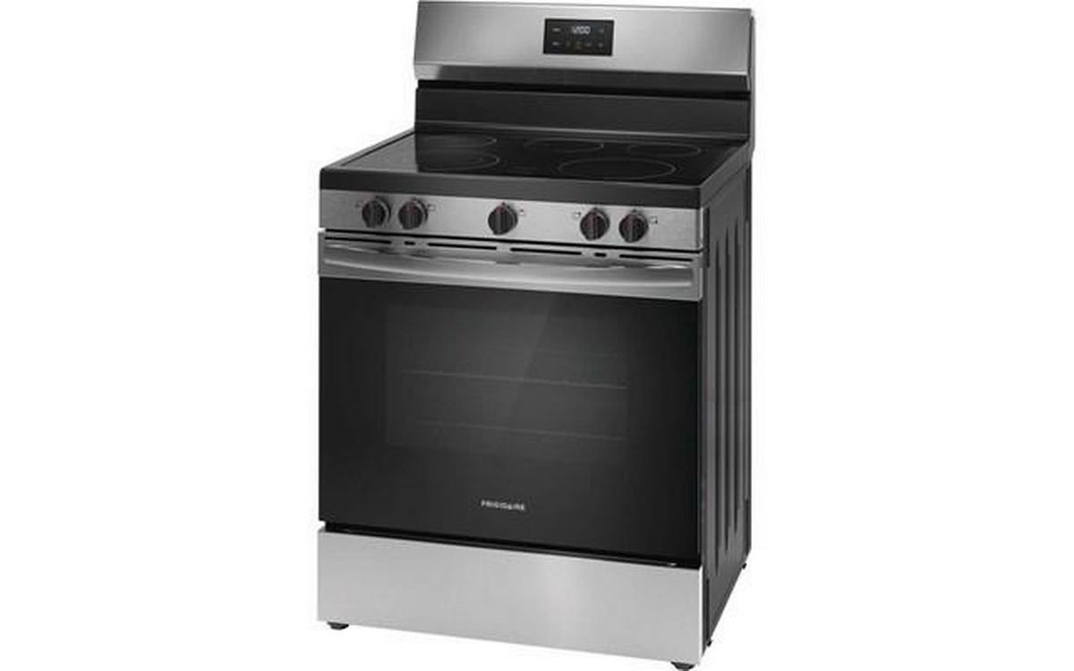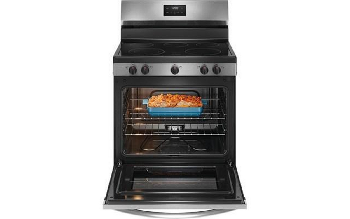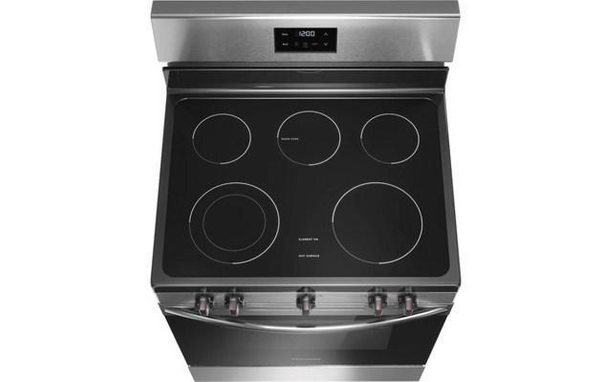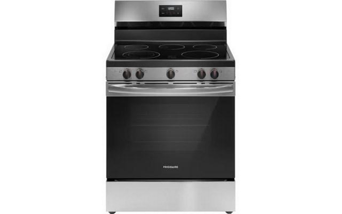 Frigidaire 30-inch freestanding electric range features 5 cooktop elements, Even Baking technology, SpaceWise® dual expandable element and a total oven capacity of 5.3 cu. ft.