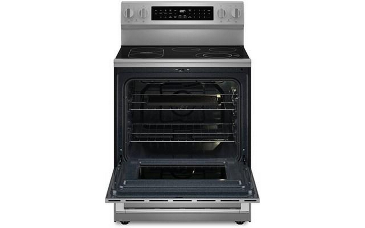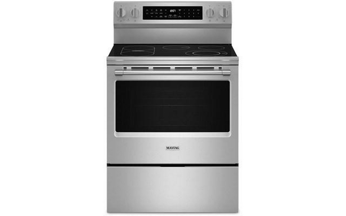 The Maytag 30-inch Electric Range features Air Fry technology, Convection technology, and 5 cooktop elements. This combination provides versatile cooking options, efficient heat distribution, and the convenience of air frying right in your oven.