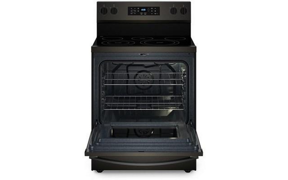 This Whirlpool® 30-inch electric range features air fry and air baking, self cleaning, a rapid preheat function, and a 5.3 cu. ft. capacity.