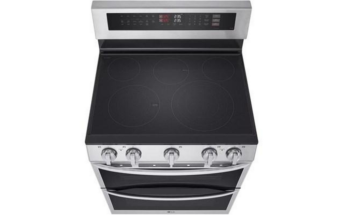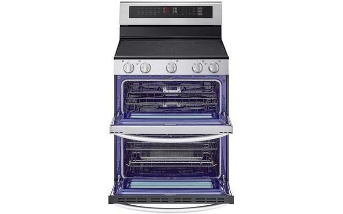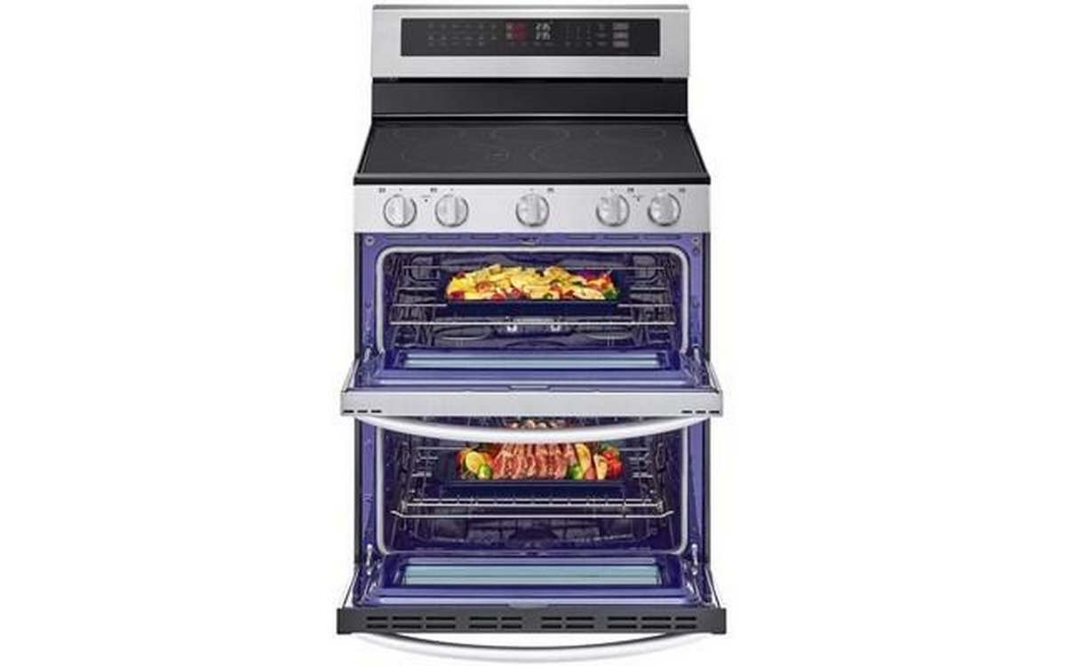 This LG 7.3 cu. ft. electric freestanding range comes with a double oven and is Smart Wi-Fi enabled. It features ProBake Convection® with Air Fry, and ThinQ® Technology with ThinQ Care and ThinQ UP.