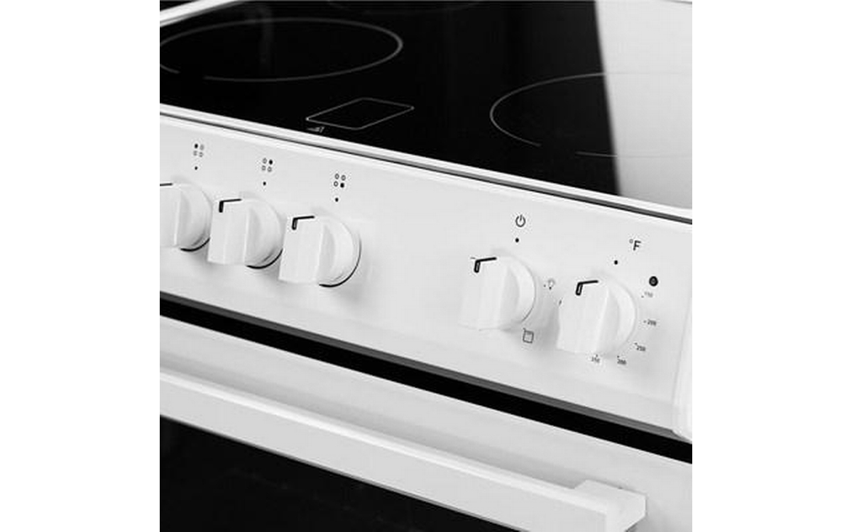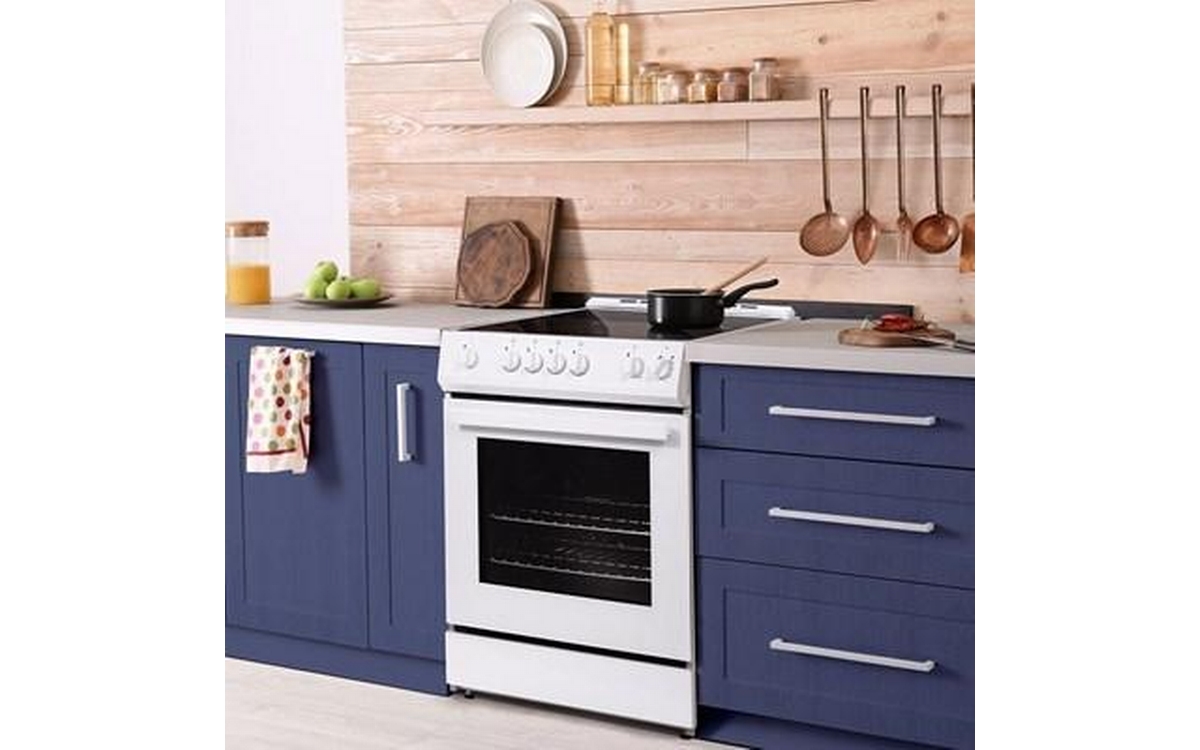 The Danby 30" Slide-in Smooth Top Electric Range in white is a stylish, convenient, and efficient addition to any kitchen. The smooth ceramic cooktop is designed for easy cleaning, and the user-friendly knob controls allow precise heat adjustment for every dish. The spacious 5.0 cu. ft. convection oven ensures even cooking, perfect for everything from family dinners to holiday feasts. Its sleek design and performance make this electric range a great addition to any kitchen. Whether you are passionate about cooking or seeking a stylish and reliable appliance, the Danby is designed to enhance your time in the kitchen.
