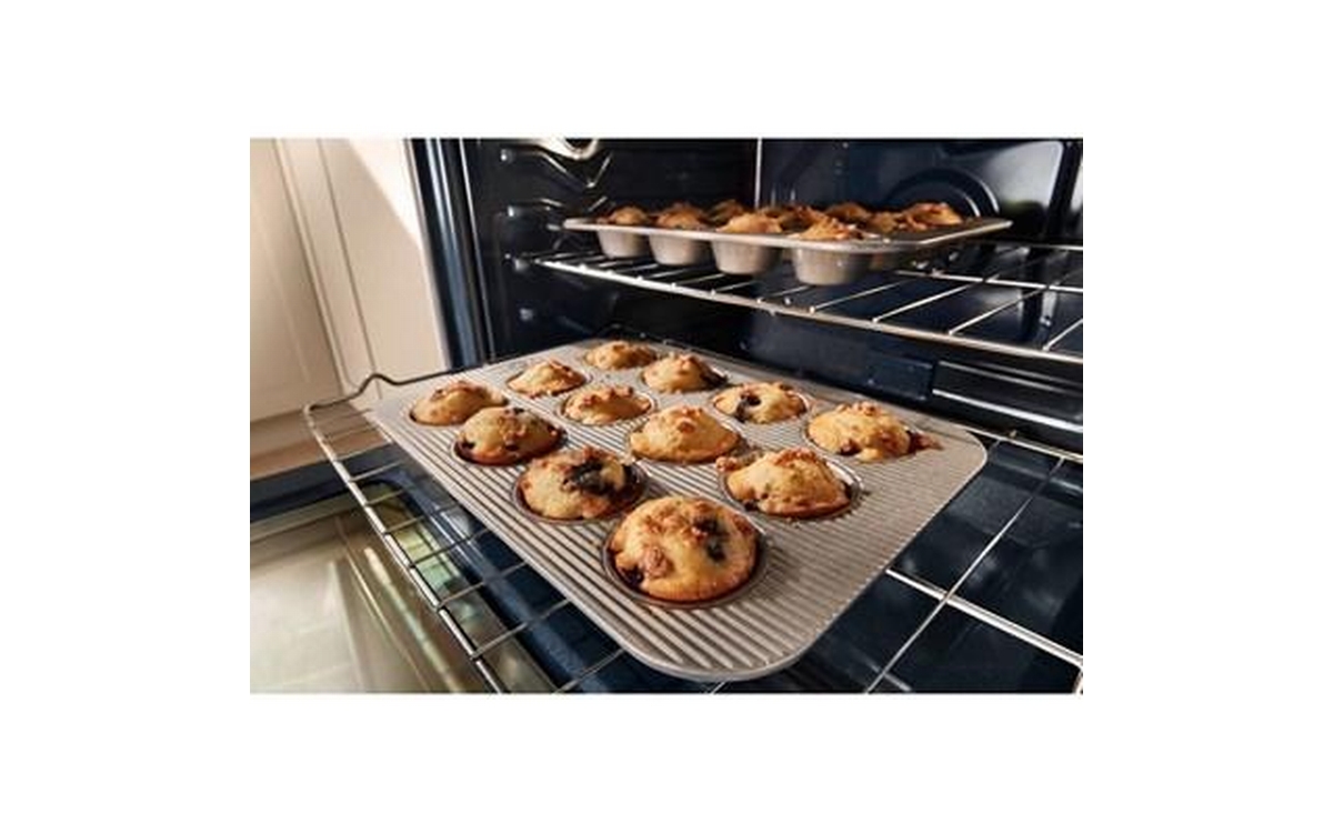 This Whirlpool® 30-inch electric range features air fry and air baking, self cleaning, a rapid preheat function, and a 5.3 cu. ft. capacity.