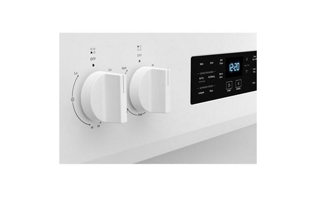 This Whirlpool® 30-inch electric range features air fry and air baking, self cleaning, a rapid preheat function, and a 5.3 cu. ft. capacity.