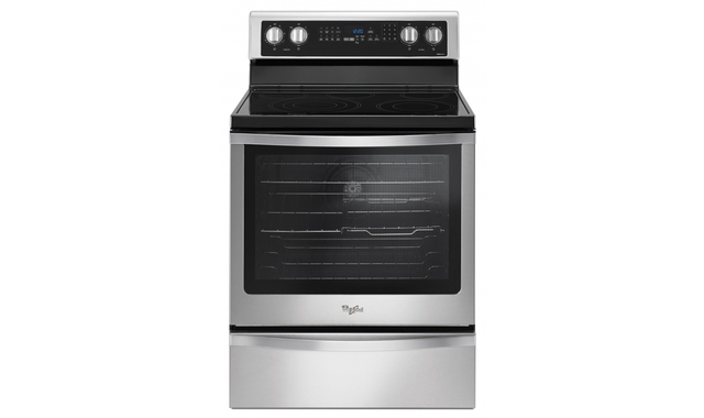 This freestanding electric range is designed to keep dinner time from getting in the way of family time. Cook food faster with true convection cooking. Convection Conversion will do the math for you to adjust cooking temperatures. Skip preheating for favorites like pizza, lasagna, chicken nuggets, fries or pies with Frozen Bake? technology. The FlexHeat? triple radiant element is like having three elements in one to fit small pots and pans and make room for larger cookware. And when it's time to clean up, AquaLift® self-cleaning technology provides this kitchen range with odor-free cleaning without harsh chemicals in only 50 minutesKEY FEATURES:Frozen Bake? Technology