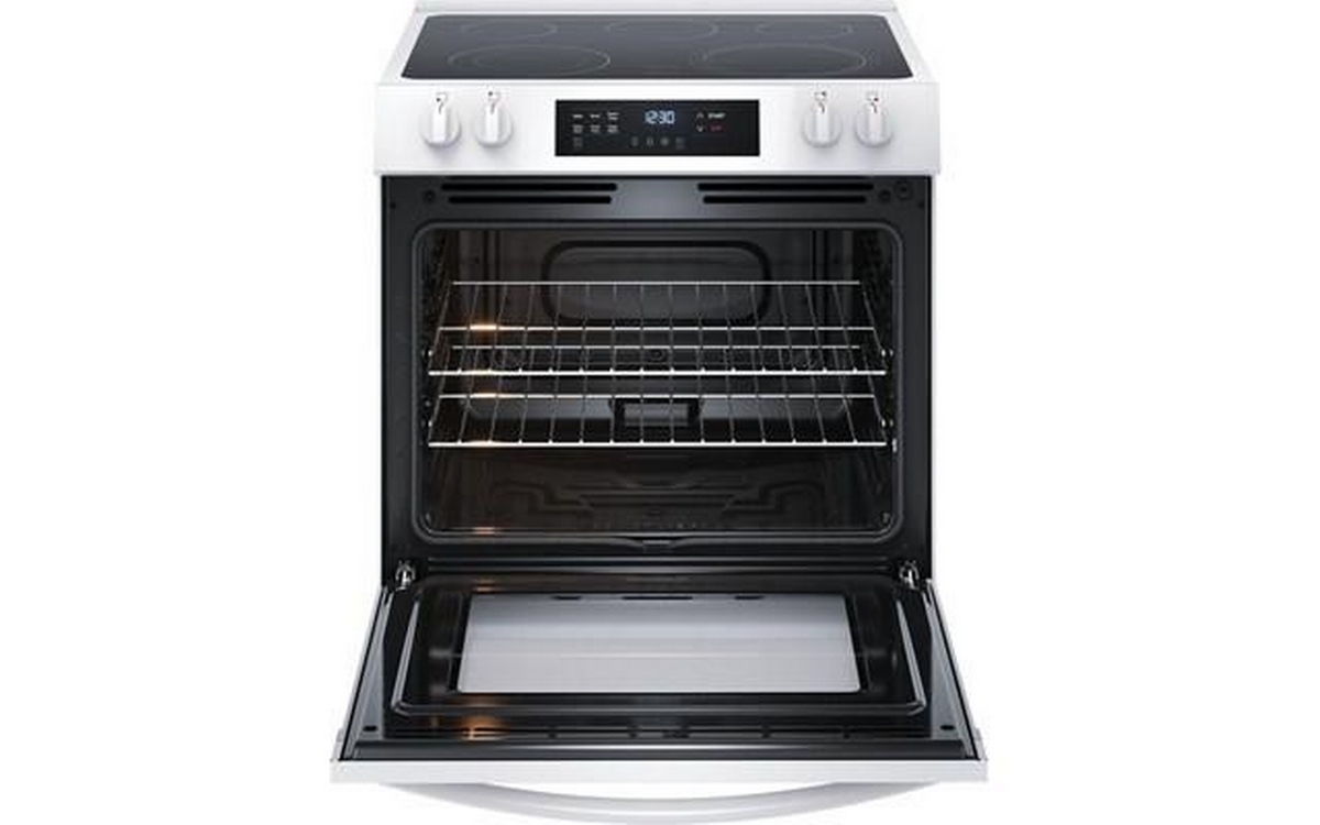 Frigidaire 30-inch electric range features digital display, flexible five elements, Even Baking Technology and a total oven capacity of 5.3 cu. ft.