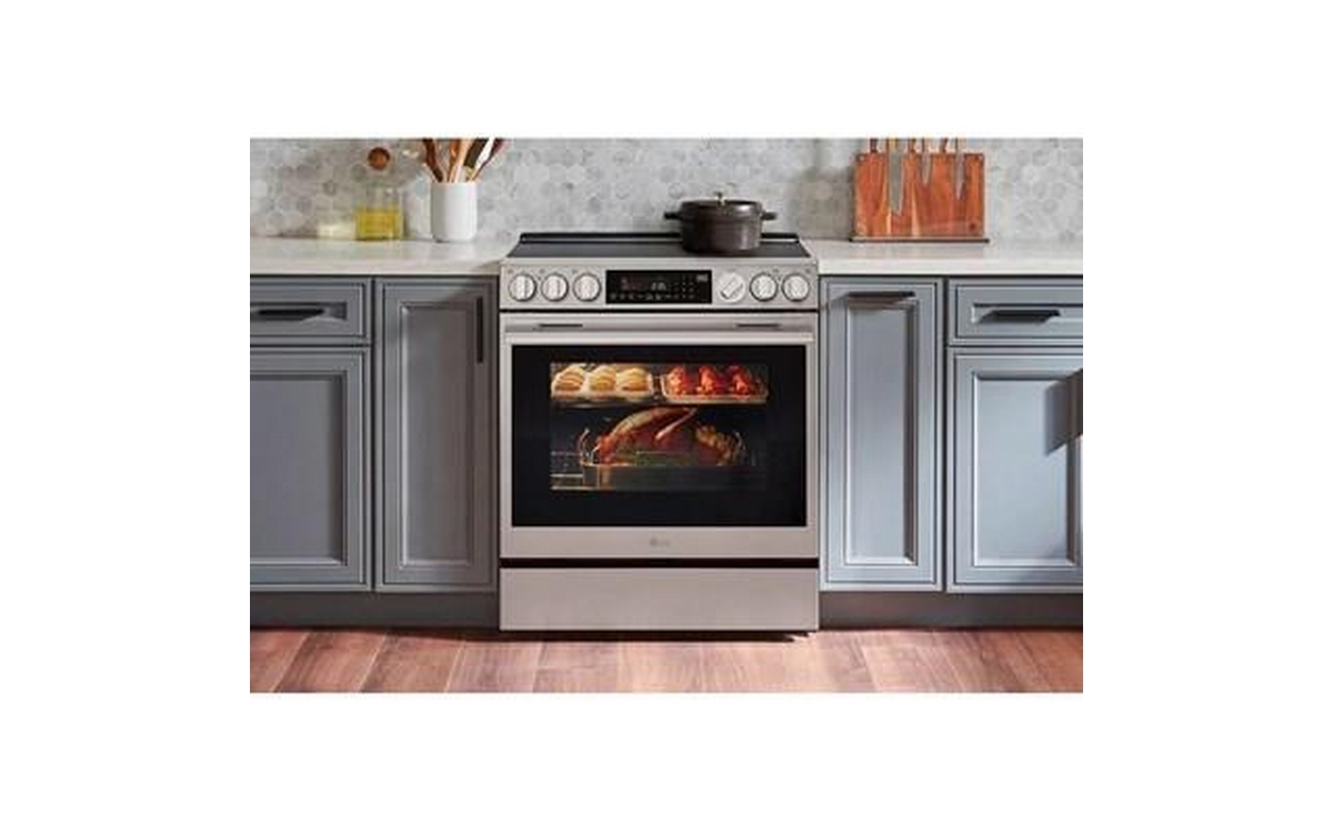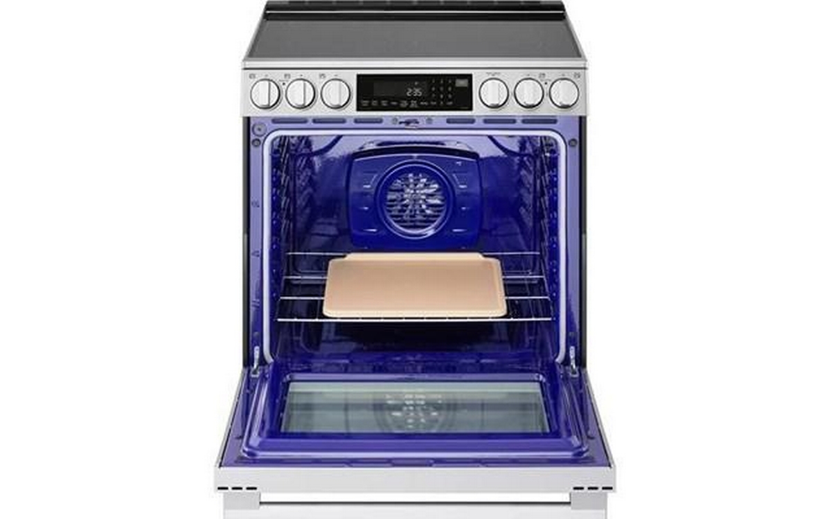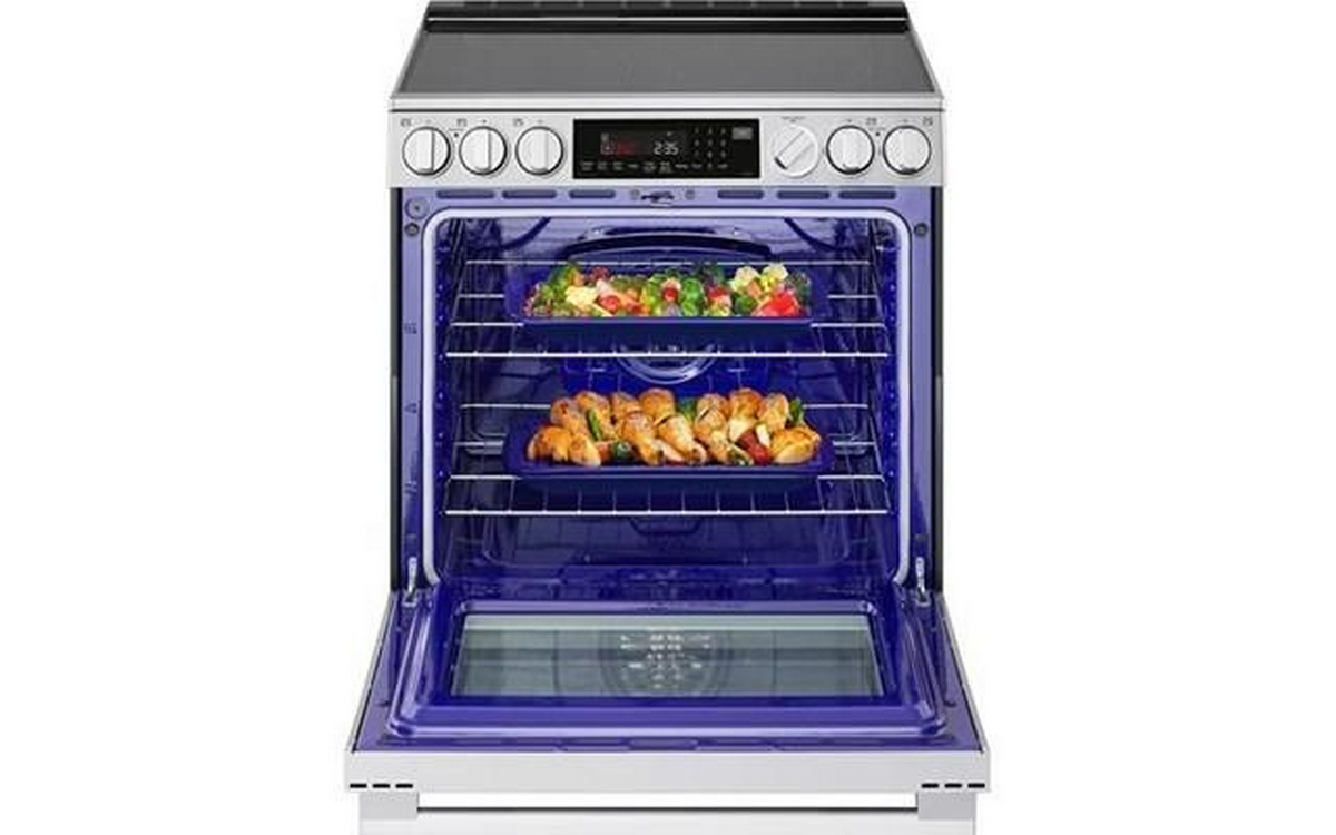 LG 6.3 cu ft. smart wi-fi enabled ProBake Convection® InstaView® electric slide-in range with Air Fry and Air Sous-Vide. It features the ThinQ® technology with Proactive customer care, an EasyClean® + self clean oven and a 3-in-1 element.