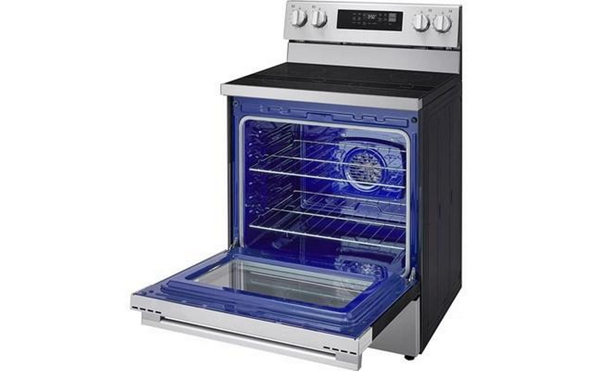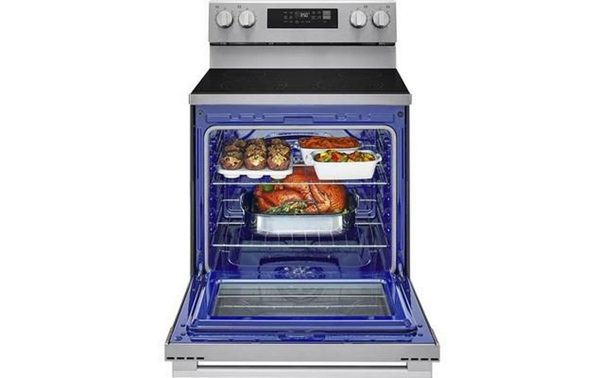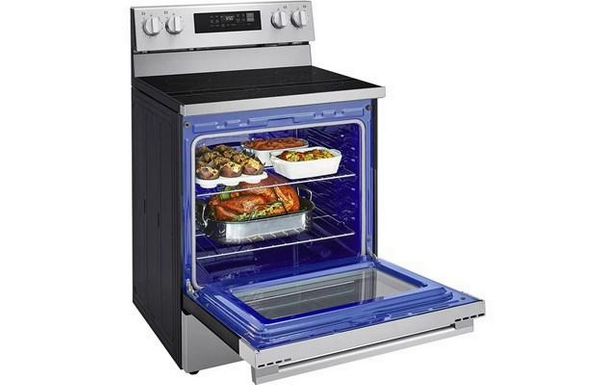 LG 30" Smart Freestanding Electric 6.3 cu ft. Range with Probake Convection and EasyClean®. Whether you’re baking large batches of cookies or a 20-lb turkey and the sides for the holidays, this spacious 6.3 cu. ft. oven can fit it all. LG ProBake Convection® delivers even, precise heat on every rack, every time. Inspired by pro ranges, it’s the first freestanding range with the heating element moved from the bottom of the oven to the back, so your cookies, cakes, roasts and more are perfectly browned every time.