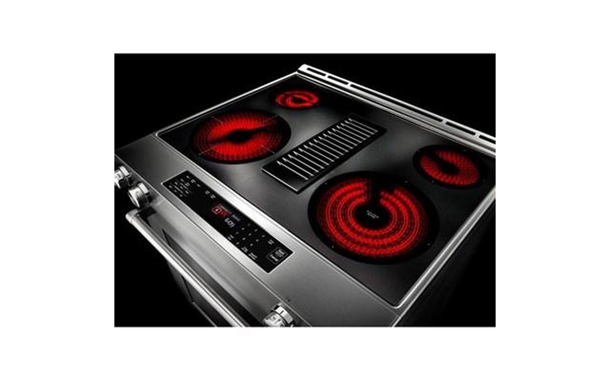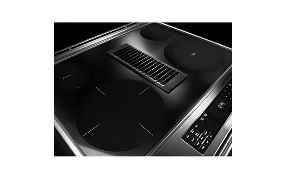 This all-in-one eclectic range includes Downdraft, which integrates the ventilation system so a separate hood is not needed. Smoke and odours can be removed outside or filtered air can be recirculated inside. This range helps you achieve flawless cooking results thanks to Even-Heat™ True Convection. The unique bow-tie design and convection fan ensure the entire oven is heated perfectly. It also has a Steam Rack that offers the ability to add moisture to the oven and enhances cooking results.